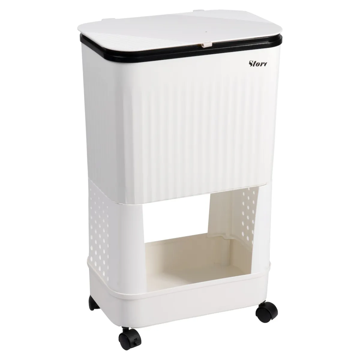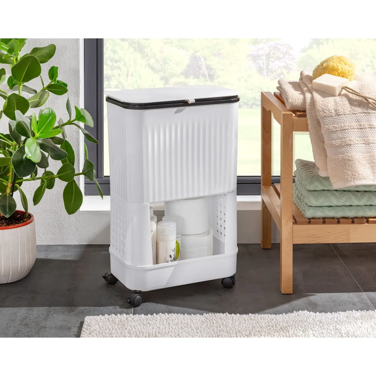 Dieser platzsparende Rollwagen bringt Ordnung und Übersicht in Ihr Zuhause: Die geräumigen Ablagen bieten Stauraum für Putzutensilien, Bürokram & Co., der 15-Liter-Mülleimer erledigt den Rest. Und dank der Rollen haben Sie alles im Handumdrehen dort, wo Sie es brauchen.