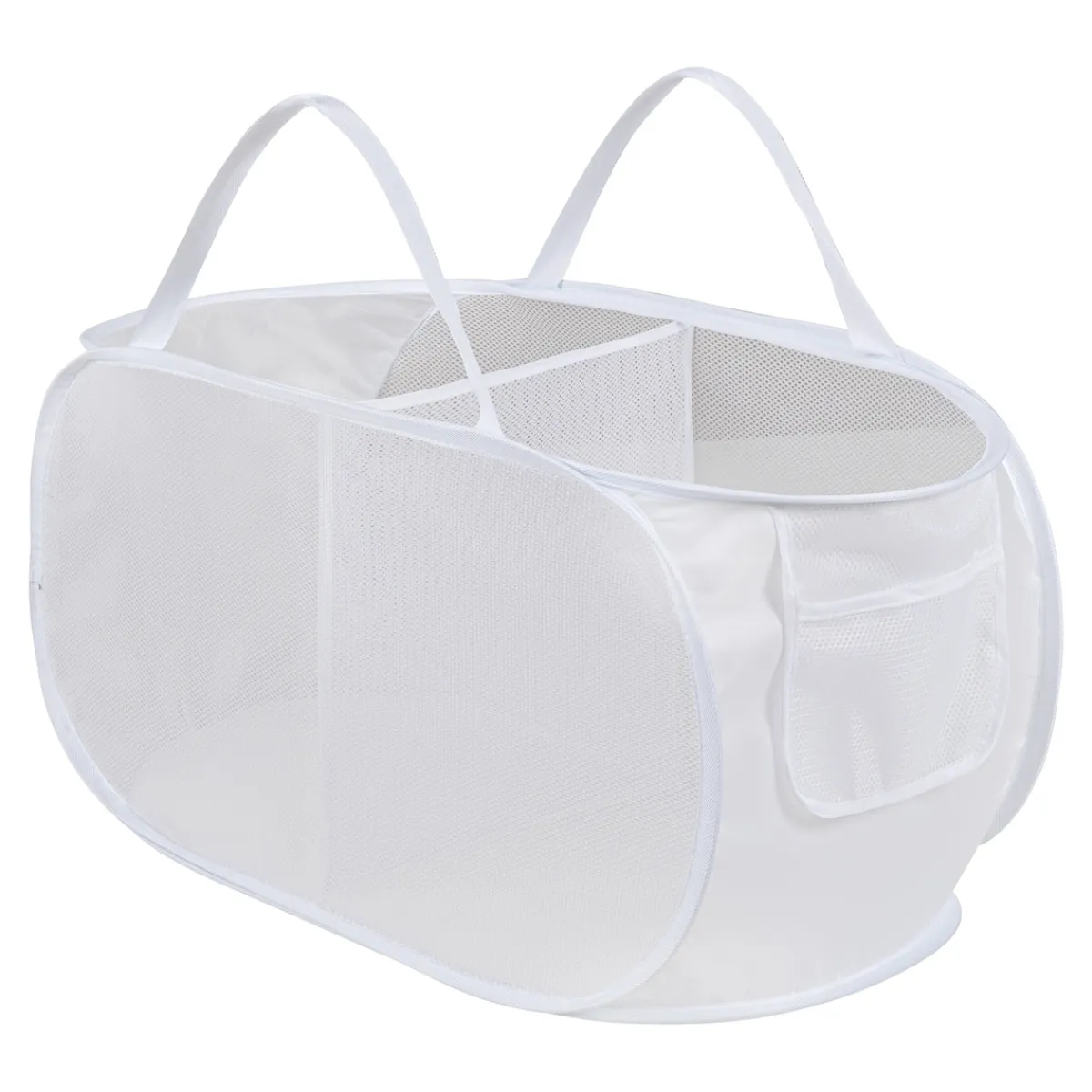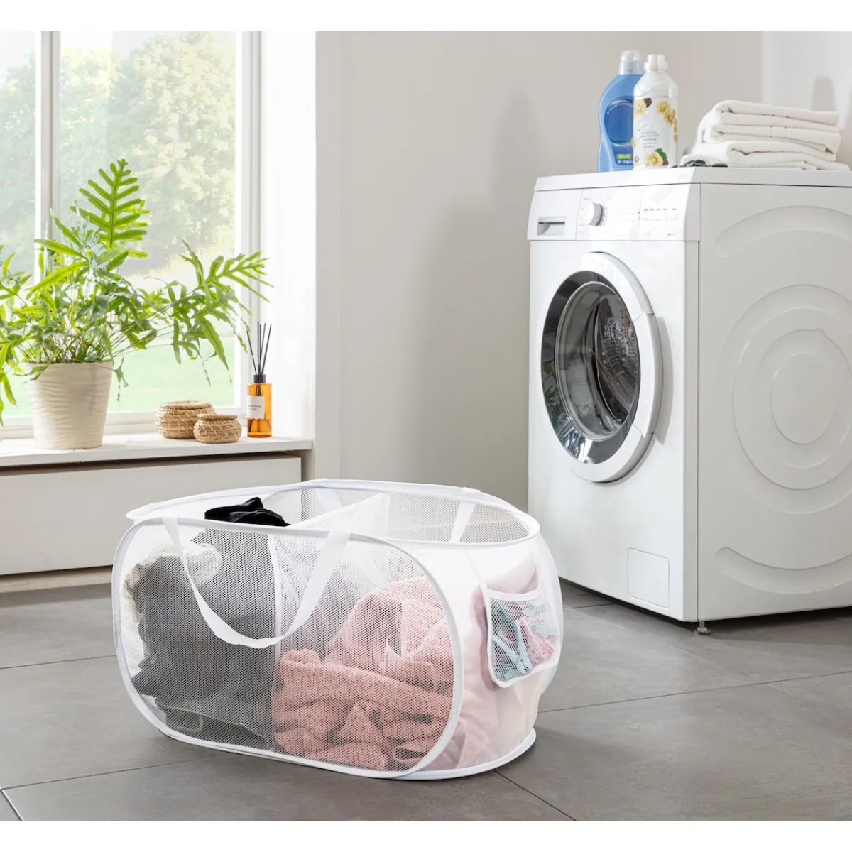Dieser Korb erleichtert die Wäschepflege enorm: In den 2 Fächern hat Ihre Wäsche viel Platz, während die kleine Seitentasche Wäscheklammern etc. aufbewahrt. Mit praktischen Tragegriffen. Platzsparend zusammenfaltbar.
