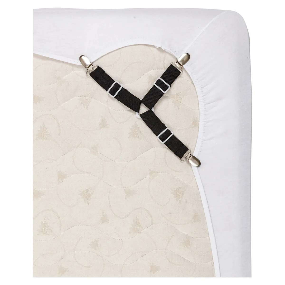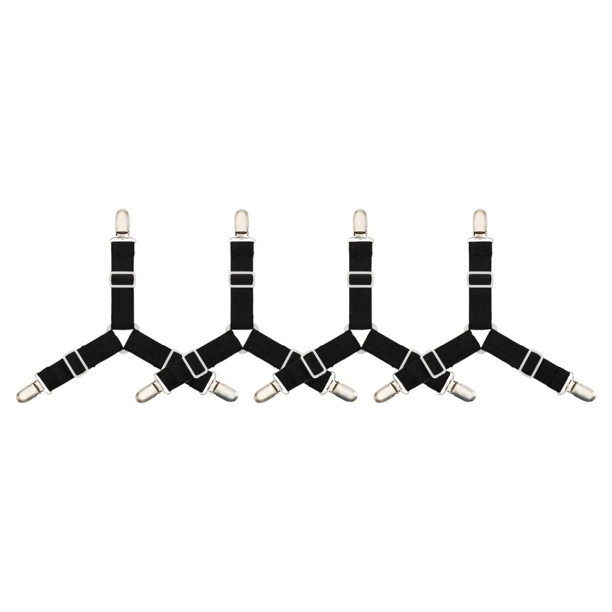 Dieser Profi macht Schluss mit Verrutschen! Dank der 3 elastischen Bänder mit Klipps bleibt Ihr Laken sicher gespannt, selbst bei hoher Beanspruchung, ohne den Stoff zu beschädigen. Die Dreiecksform zwischen den Riemen sorgt für extra Stabilität. Perfekt für Spannbetttücher, Matratzenschoner, Decken, Überzüge oder sogar Autositzbezüge. Vier Spanner pro Set bieten optimalen Halt und einfachen Komfort.