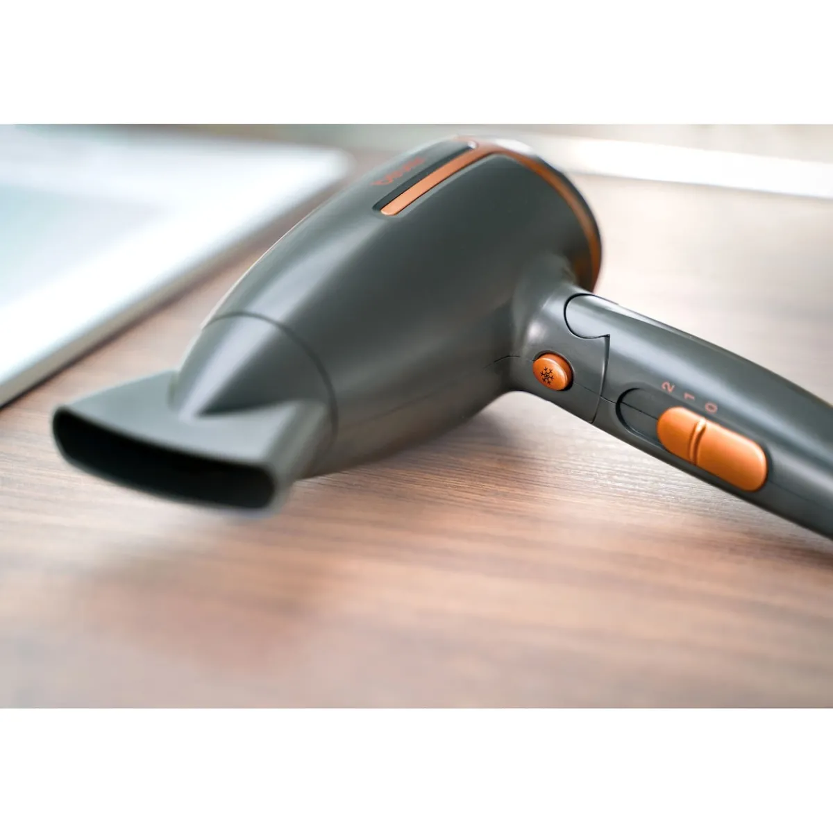 2 Heiz- und Gebläse stufen sowie Kaltluftstufe. Mit Ionenfunktion für geschmeidig, glänzendes Haar sowie Überhitzingsschutz. Inklusive Stylingdüse. Manuelle Spannungsumschaltung, daher zur weltweiten Nutzung geeignet.