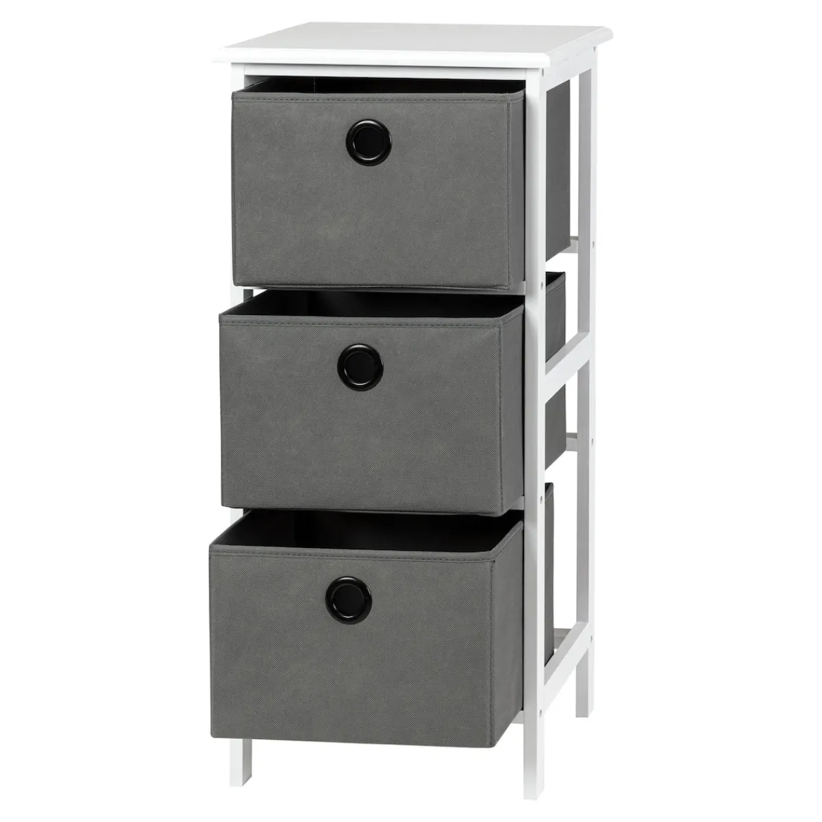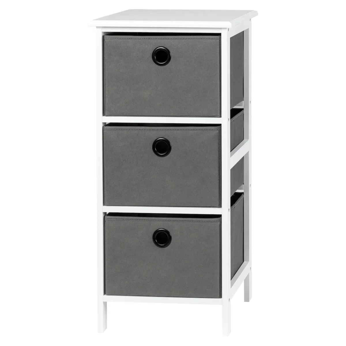 Optisch tipptopp und darüber hinaus ein unentbehrlicher Helfer beim Ordnung halten: Mit seinen 3 Stoffkisten bietet dieser Schubladenschrank ausreichend Platz für alles, was schnell verstaut und leicht griffbereit sein soll.