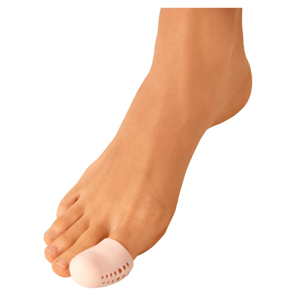 Weiche Zehenschutzkappen, die direkte Reibung verhindern und den Zeh vor Druckschmerzen schützen. Von Hand abwasch- und wiederverwendbar.