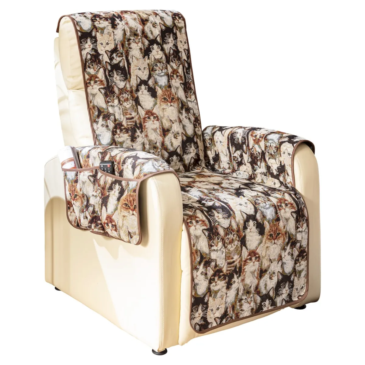 Ganz gleich ob mit oder ohne Tiere im Haushalt – dieser Schoner ist eine sinnvolle Ergänzung! Er schützt Ihren Lieblingssessel vor Verunreinigungen, Tierhaaren und der täglichen Abnutzung. Besonders praktisch: in den Seitentaschen lassen sich Fernbedienung, Brille, Zeitschriften u.v.m. verstauen.