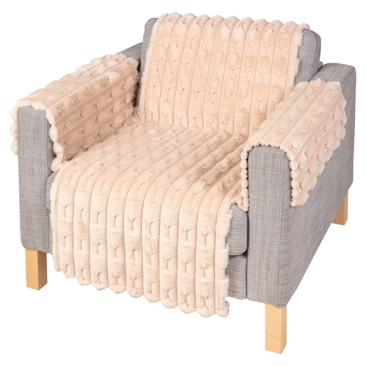 Hier kuscheln edle Optik und heimelige Gemütlichkeit zusammen – kuscheln Sie mit! Die stilvollen und dabei warmen Sitzauflagen sorgen für samtig-weichen Wohlfühlkomfort und dienen zugleich als Schutz für Ihre Polstermöbel. Mit praktischen Seitentaschen für Zeitung oder Fernbedienung.