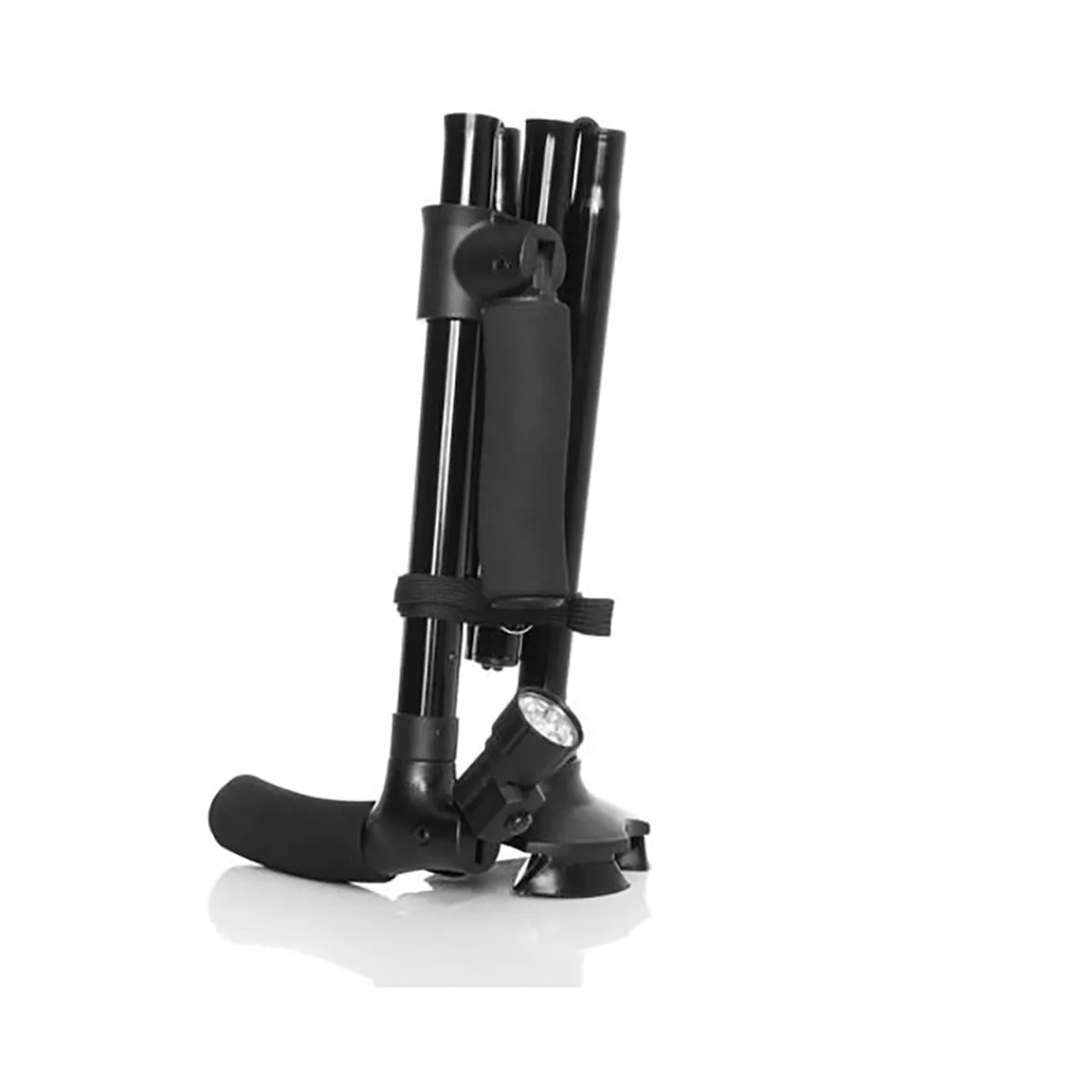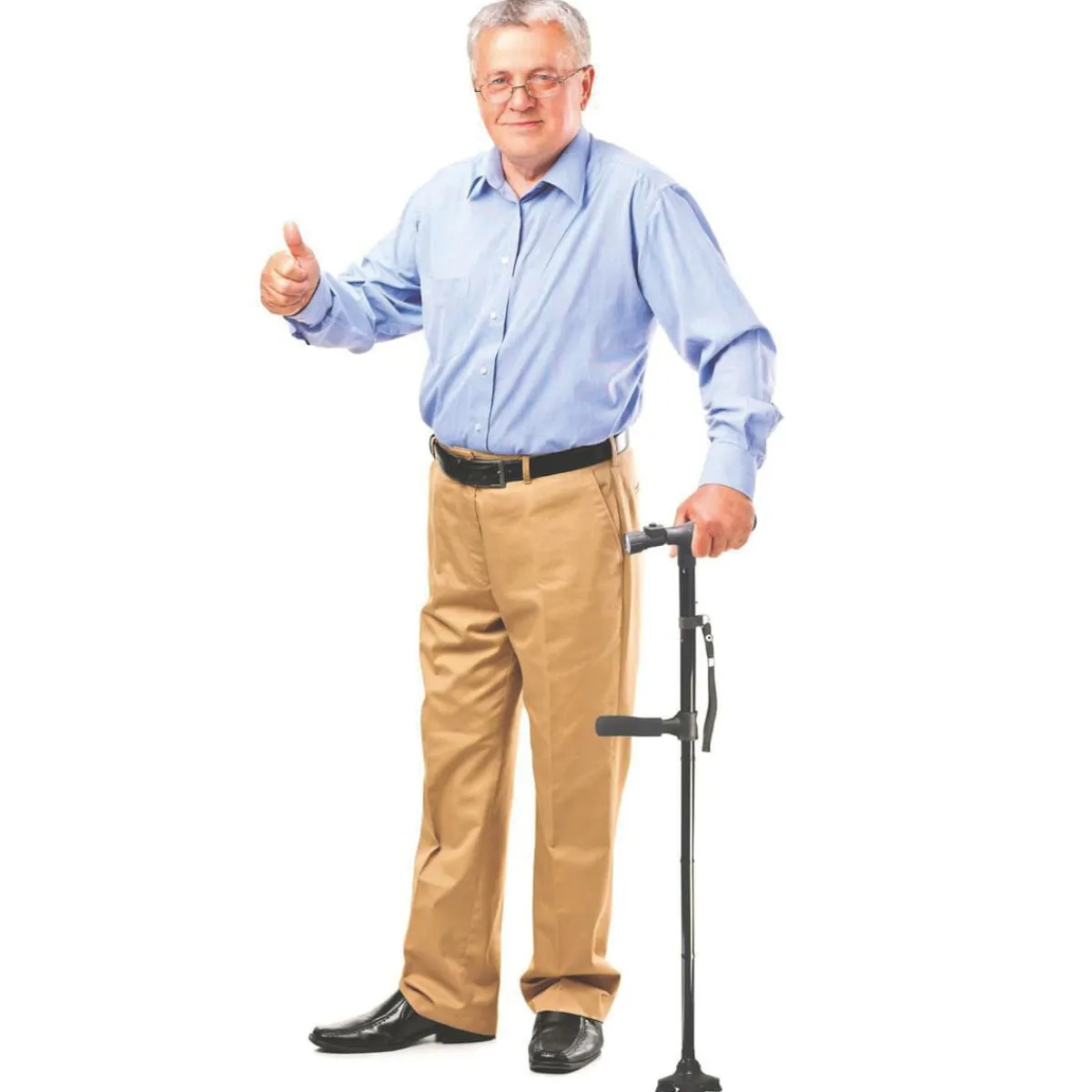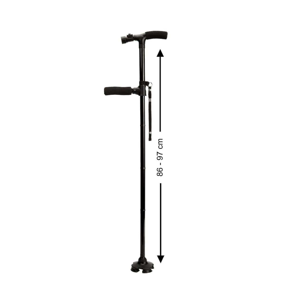 Der neue Sicherheits-Gehstock „Clever Cane“ ist mehr als ein Gehstock: Mit zweitem ausklappbarem Griff dient er auch als Aufstehhilfe – ideal z.B. von Parkbank, Sofa oder Autositz. Zwei Handgriffe ermöglichen sicheres Abstützen mit beiden Armen. Das eingebaute helle LED-Licht sorgt für Orientierung im Dunkeln, der schwenkbare Strahler zeigt den Weg oder beleuchtet z.B. das Schlüsselloch. Für zusätzliche Sicherheit sorgt ein lauter SOS-Alarm (ca. 100 dBA), der per Knopfdruck auslösbar ist. Der besonders geformte Fuß mit drei Gummifüßen bietet hohe Stabilität – auch auf unebenem Boden – und der Gehstock kann frei stehen. Die Höhe ist verstellbar, und für unterwegs lässt sich der Clever Cane auf 32 cm zusammenfalten und leicht verstauen – perfekt, wenn man ihn nicht ständig braucht.
