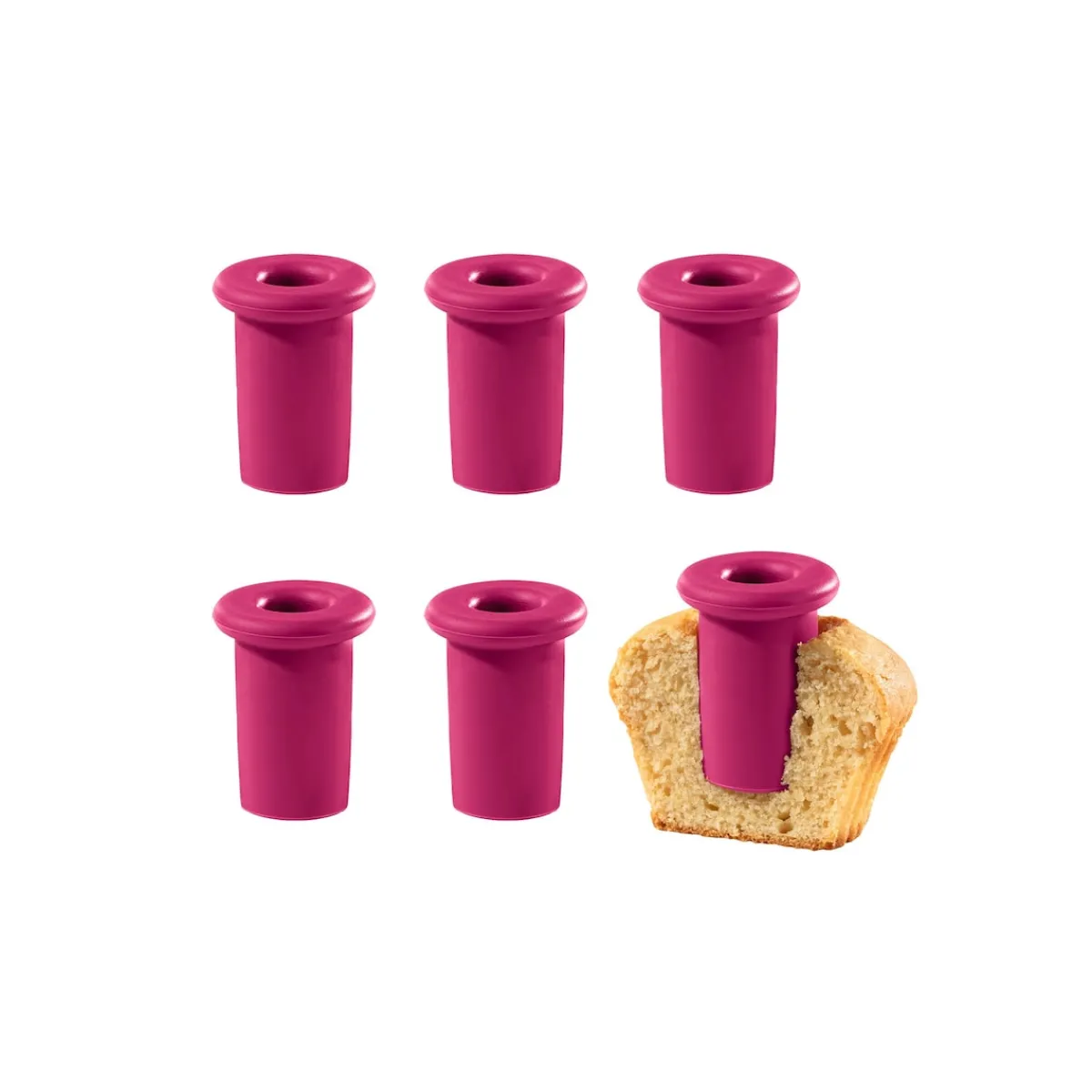 Sie möchten Ihre Liebsten mit köstlichen Muffins und Cupcakes überraschen, aber das lästige Aushöhlen des Teigs raubt Ihnen den Spaß? Unsere Silikon-Backförmchen CuCap sind die Lösung! Einfach die cleveren Förmchen in den vorgebackenen Teig drücken, nach dem Backen entnehmen und individuell befüllen. Das Backen wird wieder zu einem freudigen Erlebnis!