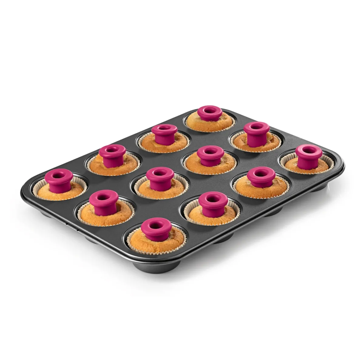 Ein weiterer Vorteil: Sie müssen die Förmchen nicht einfetten! Dank des praktischen Aussparens vor dem Backen bleiben keine Teigreste übrig, und Sie können sich ganz auf das Wichtigste konzentrieren – das Backen köstlicher Cupcakes mit einer individuellen Füllung. Schluss mit unschönen Oberflächen durch kompliziertes Aushöhlen!