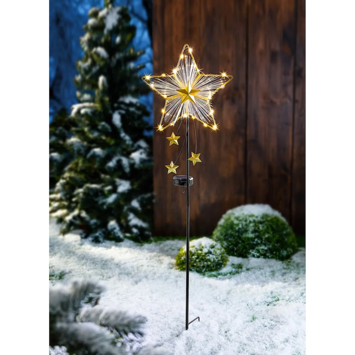 Lassen Sie Ihren Garten mit diesem Solar-Stecker in einem faszinierenden Licht erstrahlen. Sobald die Dämmerung hereinbricht, verwandelt der warmweiß leuchtende Stern Ihren Außenbereich in ein magisches Winter-Wunderland.
