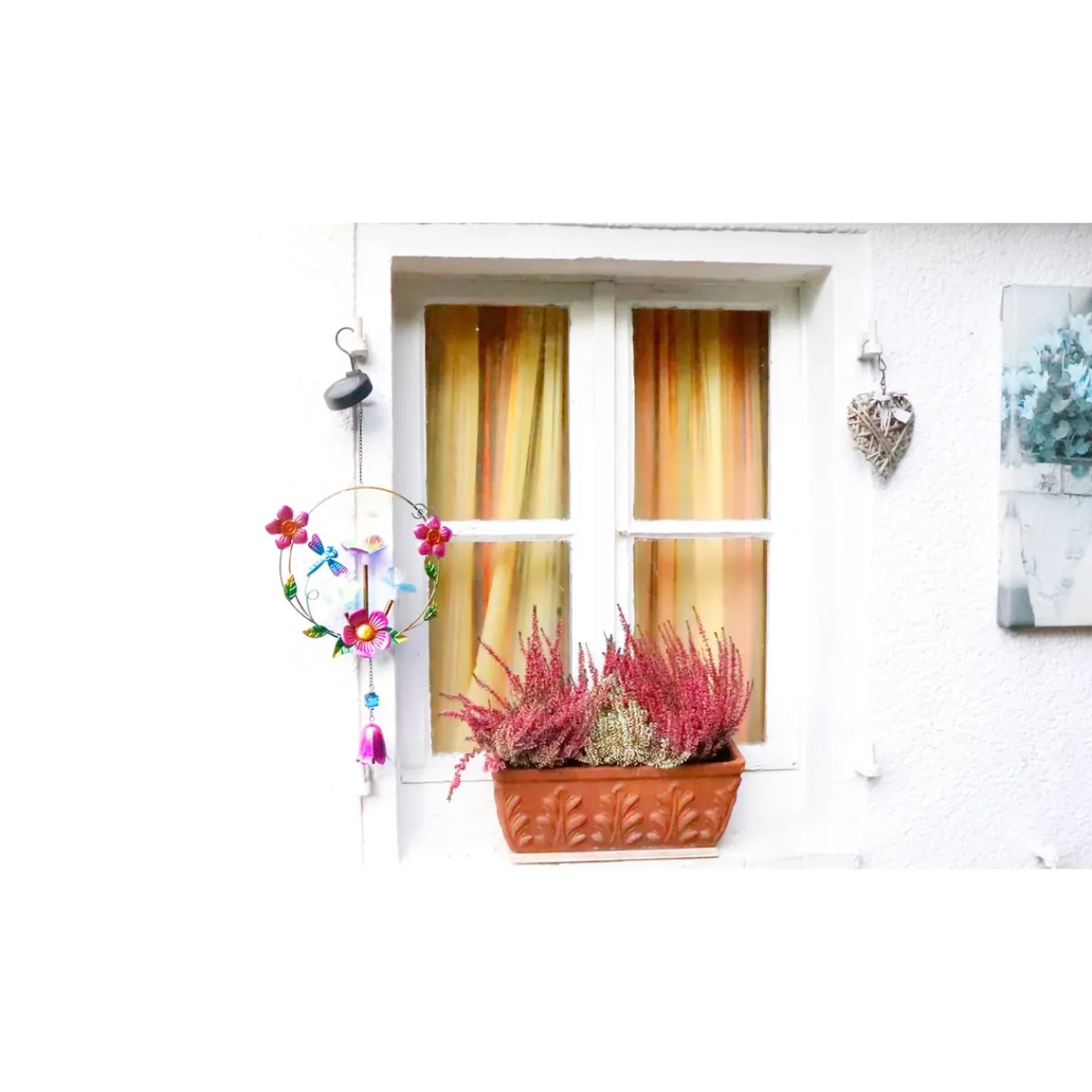 Die Solar-LED-Hängedeko „Blütenzauber“ bringt ein stimmungsvolles Lichtspiel in Ihren Außenbereich. Tagsüber reflektieren die filigranen Blüten aus Metall das Sonnenlicht und sorgen für dekorative Glanzeffekte. Sobald es dunkel wird, schalten sich die LEDs automatisch ein und wechseln sanft ihre Farben. Der integrierte Li-Ion-Akku speichert die Energie des Tages und lässt die Leuchte bis zu 8 Stunden erstrahlen. Aus hochwertigen Materialien gefertigt, eignet sich die Hängedeko ideal für Balkon, Terrasse oder Garten.