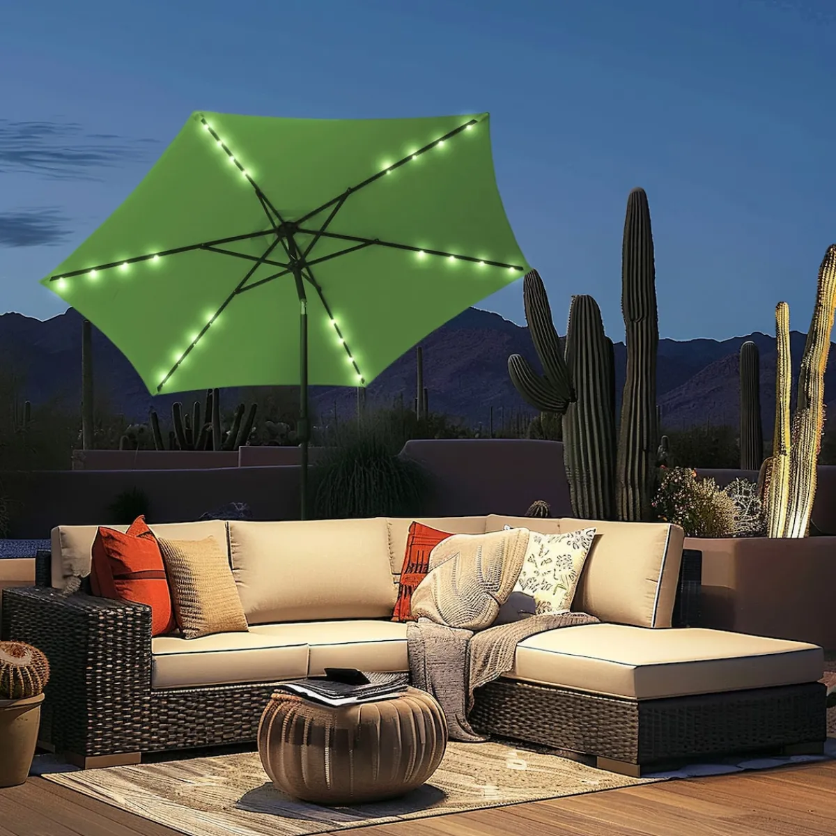Mit dem Solar-Sonnenschirm „Sternenhimmel“ erleben Sie Sommerabende in Ihrem Garten oder auf dem Balkon noch angenehmer. Dank seines großzügigen Durchmessers von 2,7 m und UV-Faktor 50+ spendet er großzügigen Schatten, während die integrierte Solarbeleuchtung mit warmweißen LEDs eine stimmungsvolle Atmosphäre schafft. Die praktische Handkurbel ermöglicht ein einfaches Öffnen und Schließen, während der hochwertige Polyesterbezug mit UV50+ Schutz für Langlebigkeit sorgt. Mit der Dimmfunktion können Sie die Helligkeit nach Ihren Wünschen anpassen und gemütliche Abende im Freien verlängern.
