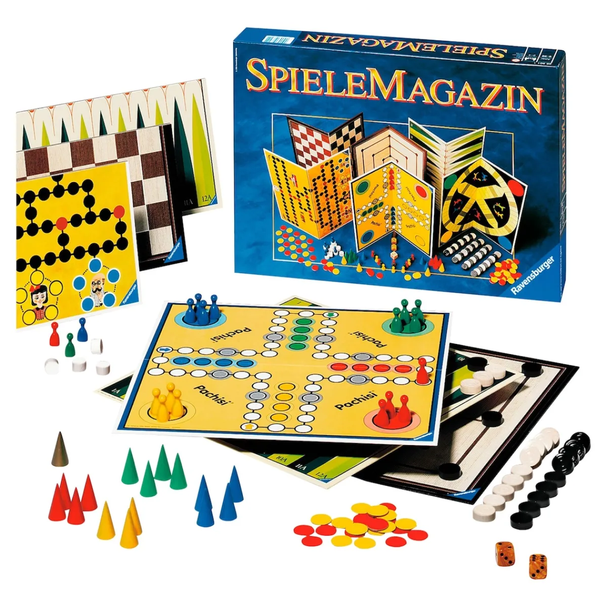 Was drin ist, ist „in“. Von spannenden Würfelspielen über klassische Brettspiele bis zu unterhaltsamen Knobelspielen ist alles in der Spielesammlung „Spiele Magazin“ enthalten. Dazu gehören sowohl bekannte Klassiker, als auch weltweit beliebte Originalspiele wie Dame, Mühle, Backgammon oder Pachisi® sowie Malefiz® und Fang den Hut®. Außerdem erklärt das ausführliche Regelheft viele interessante Varianten, wie die Spiele anders gespielt werden könnten, zum Beispiel 10-x-10-Felder-Dame. So ist bei den 35 Spielmöglichkeiten in der Spielesammlung sicher für jeden ein Lieblingsspiel dabei. Übrigens sind alle Knobelspiele wie „Mäxchen“, „Stumme Jule“ oder „Kuhschwanz“ für beliebig viele Spieler, so dass die Spielesammlung auch bei jeder Party für viel Spaß sorgt!