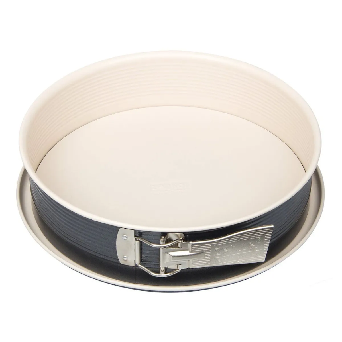 Die Springform mit Flachboden und Auslaufschutz von Zenker ist ideal für Tortenböden. Dank der keramisch verstärkten Antihaftbeschichtung lässt sich das Backgut einfach Entformen und ist hitzebeständig bis +230°C.