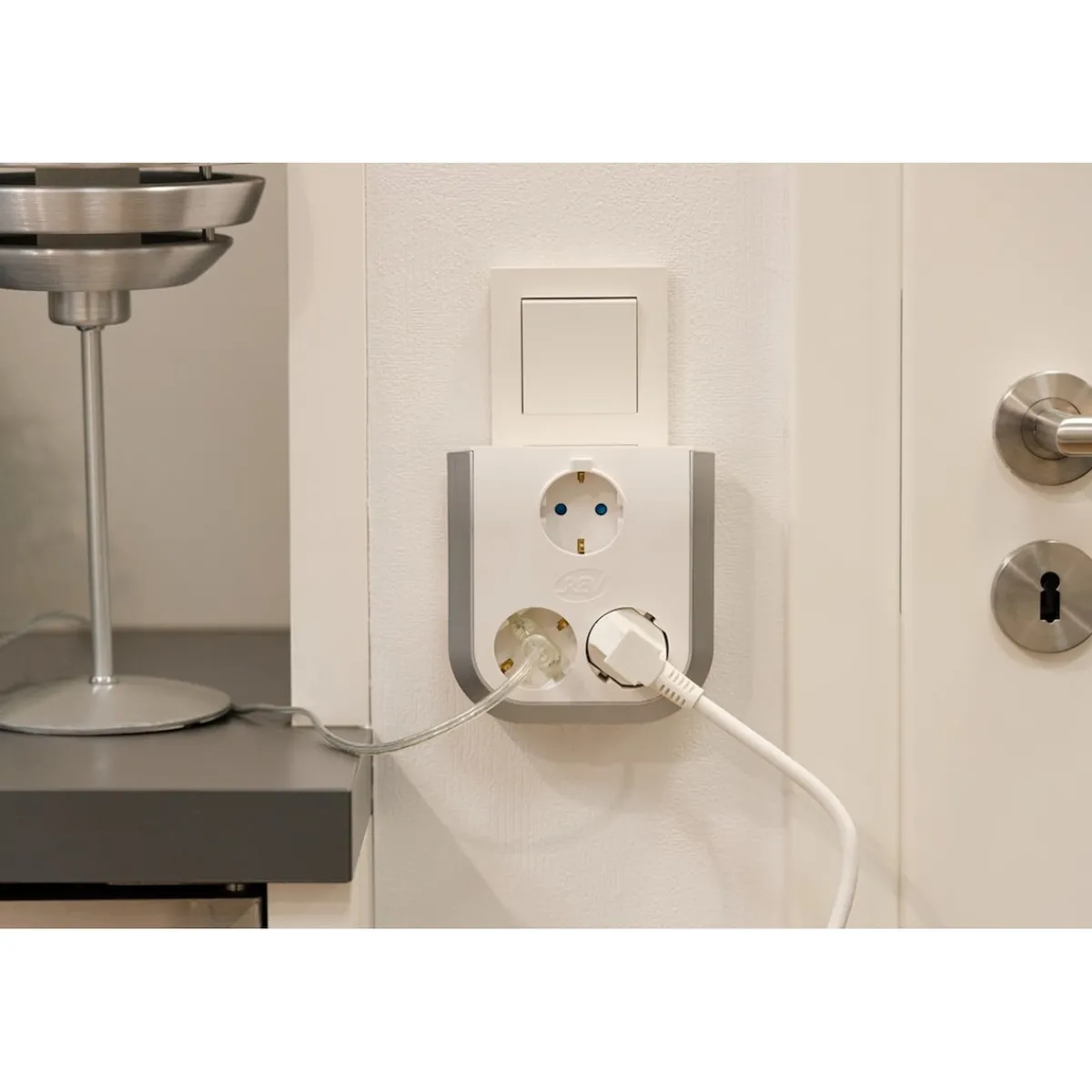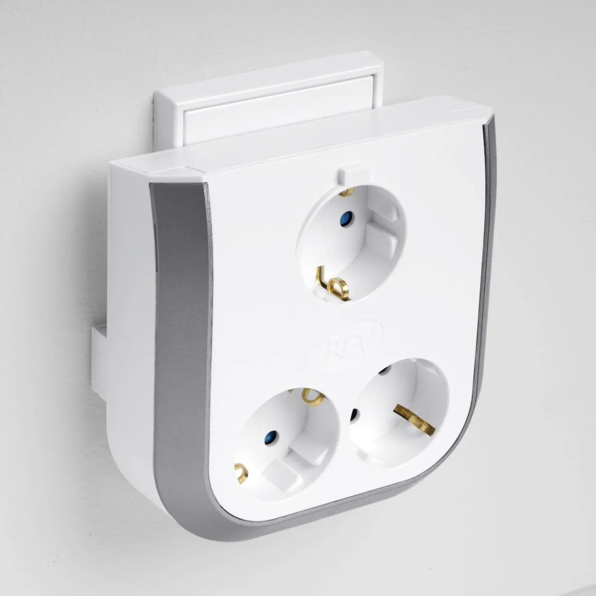 Der praktische Steckdosenadapter erweitert Ihre übliche Steckdose kompakt und leicht zugänglich um 2 Plätze – so können Sie mehrere Elektrogeräte gleichzeitig mit Strom versorgen. Und das vollkommen sicher: Erst wenn der Adapter fest an die Wand geschraubt ist, wird die Stromzufuhr der Steckdosen aktiviert.