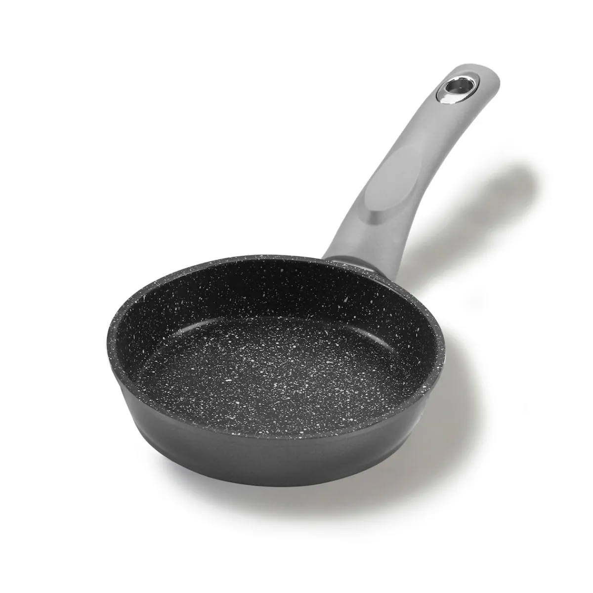 STONELINE – Das Original! Gesund fettfrei kochen und braten! Ein modernes Design in Kombination mit ergonomischen Soft-Touch-Griffen zeichnet die Bratpfannen der STONELINE Gourmundo Linie aus. Diese 14 cm Pfanne ist ein Muss in jeder Küche. Sie ist für sehr kleine Mengen optimal geeignet. Dank der speziellen STONELINE-Antihaftbeschichtung lassen sich Ihre Speisen – je nach Wunsch – mit oder ohne Bratfett und Ol zubereiten und ganz ohne Ankleben aus dem Kochgeschirr lösen. Hierbei spielt es keine Rolle, ob Sie auf Glaskeramik, Induktion, Elektro oder Gas kochen. In Pfannen mit der original STONELINE-Beschichtung bleiben keine hartnäckigen Reste haften und die einfache Handwäsche spart Ihnen Zeit und Mühe. 1 Bratpfanne Induktion, ø ca. 14 cm, Höhe: ca. 3,2 cm, ca. 0,4 l; Induktionsboden: Ø ca. 11,8 cm Die wichtigsten Vorteile des STONELINE Kochgeschirrs auf einen Blick: Weltweit einzige Antihaftbeschichtung mit echten Steinpartikeln Kratzfeste STONELINE-Antihaftbeschichtung Vitaminschonend kochen und braten ohne Fett und Ol Optimales Bratergebnis und kross gebratenes Fleisch Auch für Vegetarier geeignet: Gemüse bleibt knackig und saftig Kein Anbrennen und kein Ankleben Super leicht zu reinigen Extra starker, verzugsfreier Boden Bodenstärke: ca. 4,8 mm Für alle Herdarten geeignet, auch Induktion Backofengeeignet bis 150 °C Material: Aluminiumguss Reinigungs- und Pflegetipps: Vor dem ersten Gebrauch empfehlen wir, Ihr Koch- oder Backgeschirr mit etwas Wasser und einem milden Spülmittel gründlich auszuwaschen. Verteilen Sie anschließend mit einem Papierküchentuch einige Tropfen Speiseöl auf der Beschichtung. Bei der weiteren Nutzung können Sie auf den Einsatz von Fett oder Ol verzichten! Dank dem Easy-Clean-Effekt wird die Reinigung per Hand empfohlen. Einfach mit heißem Wasser, Handspülmittel und einem weichen Schwamm auswischen.
