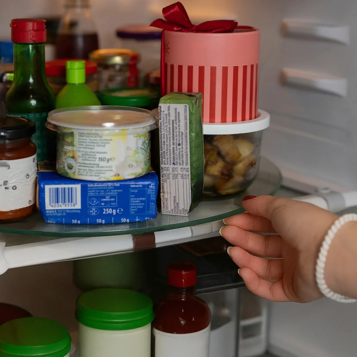 STONELINE – Das Original! Unsere drehbare Servierplatte aus Glas ist mit einem Durchmesser von 32 cm ideal für Familienessen, Partys und besondere Anlässe. Durch das zeitlose Design passt sie zu jedem Küchen- und Esszimmer-Ambiente. Der Drehteller ist nicht nur zuhause ein tolles Accessoire. Auch im Büro oder bei Veranstaltungen können darauf Vorspeisen, Hauptgerichte oder Desserts stilvoll und praktisch präsentiert werden. Die leichtgängige 360-Grad-Drehfunktion ermöglicht, alle darauf platzierten Speisen bequem zu entnehmen. Ob für Buffets, Käseplatten, Sushi oder Desserts – alles ist sofort griffbereit. Sie können den Servierteller auch als Topfuntersetzer für heiße Pfannen, Töpfe oder Auflaufformen benutzen. Gefertigt aus robustem, bruchsicherem Glas, ist diese Servierplatte nicht nur optisch ansprechend, sondern auch langlebig und widerstandsfähig. Der rutschhemmende Standfuß sorgt für einen sicheren Halt und verhindert Kratzer auf empfindlichen Oberflächen. Die glatte Oberfläche macht die Glasplatte sehr hygienisch. Sie ist geruchsneutral und kann einfach mit einem feuchten Tuch abgewischt werden. 1 Servierplatte aus Glas, ø ca. 32 cm, Stärke Servierplatte: ca. 2,5 mm, Gesamthöhe: ca. 2,6 cmDesign: Transparent Die wichtigsten Vorteile auf einen Blick: Viele Verwendungsmöglichkeiten: Schneiden, vorbereiten, anrichten, servieren Auch als Topfuntersetzer geeignet Zeitloses Design Mit rutschhemmendem Standfuß Hygienisch und geruchsneutral Leicht zu reinigen dank glatter Oberfläche Material Servierplatte: bruchstabilisiertes Glas