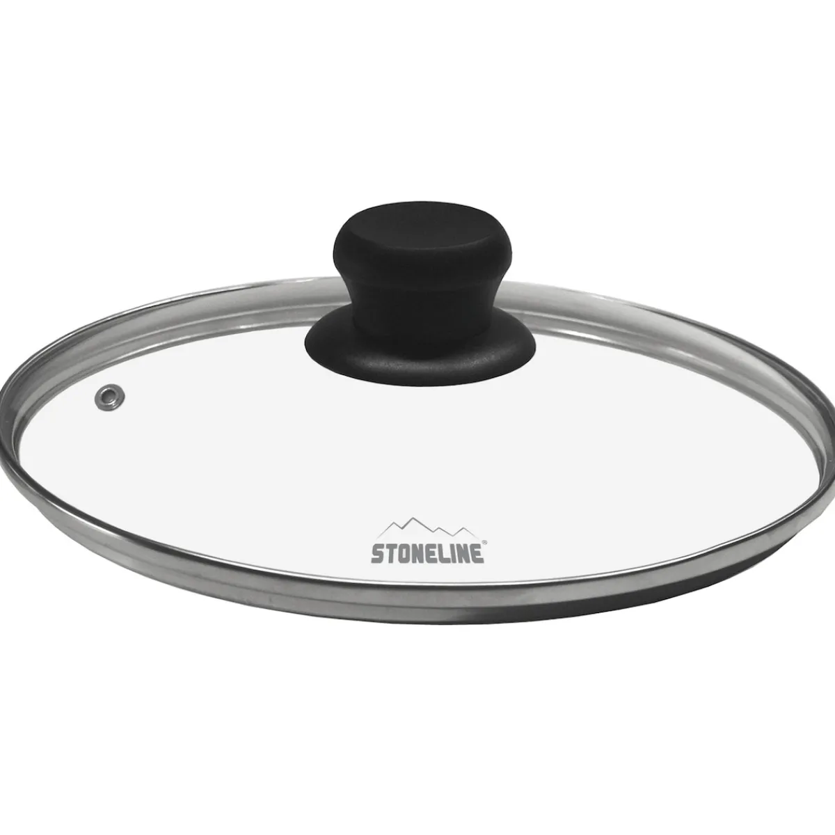 STONELINE – Das Original! Glasdeckel mit Edelstahlrand Passend für Töpfe und Pfannen der Marke STONELINE und weitere ø ca. 26 cm Mit Abdampfventil Mit hochwertigem schwarzen Deckelknauf aus Kunststoff