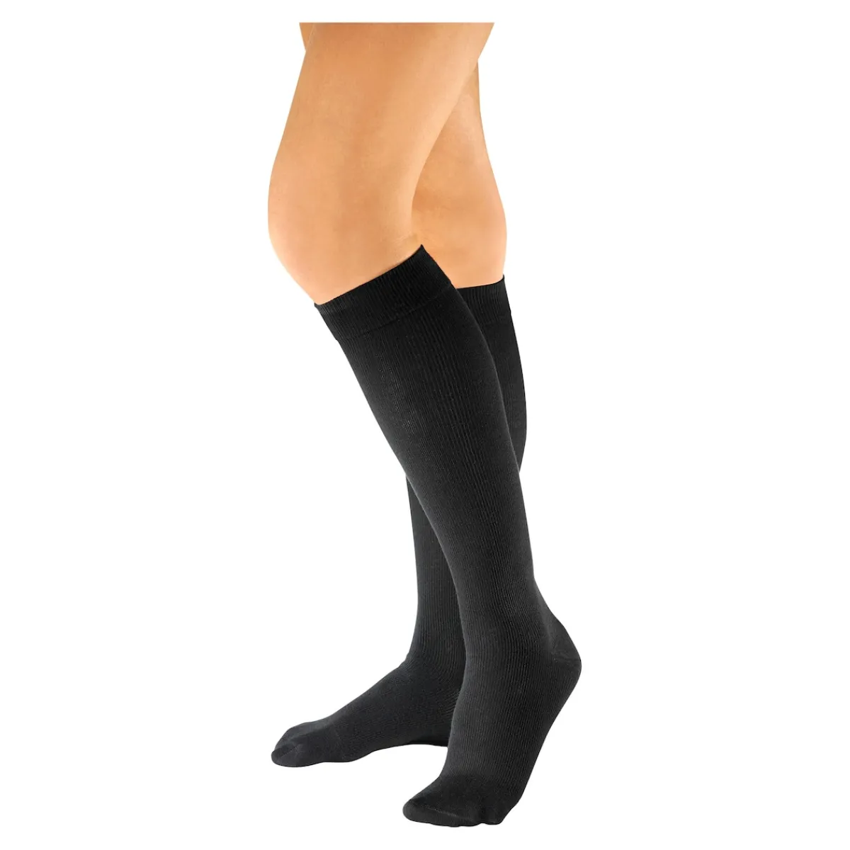 Der medizinisch wirksame Druckverlauf verbessert die Durchblutung der Beine und beugt so einer Ermüdung und Anschwellung vor. Breiter, softer Abschlussbund ohne Naht.