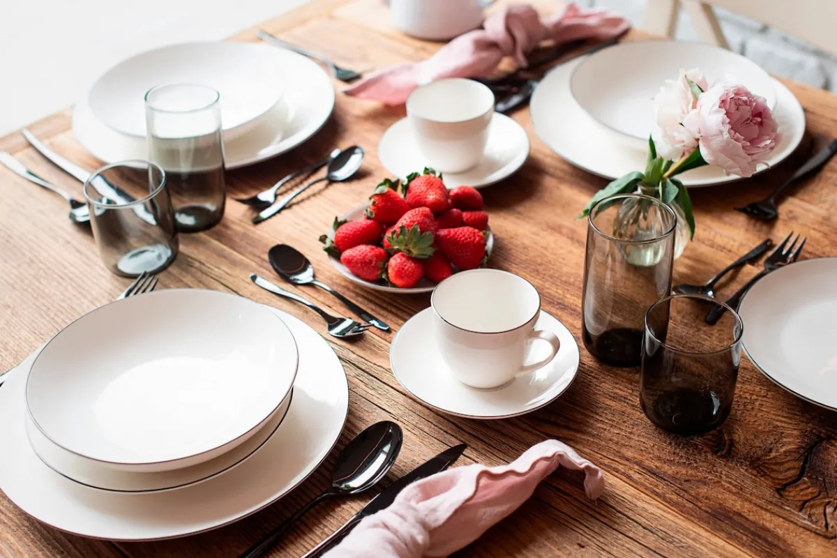 Klassisches Porzellan Geschirrservice mit modernem Touch: die Serie Felise, der Marke MÄSER, überzeugt durch seinen zeitlosen, filigranen Look. Das leichte, elegante Porzellan harmoniert perfekt mit dem puristischen Design und dem dezenten, schwarzen Rand. Alltagstauglich, mikrowellengeeignet und spülmaschinengeeignet.