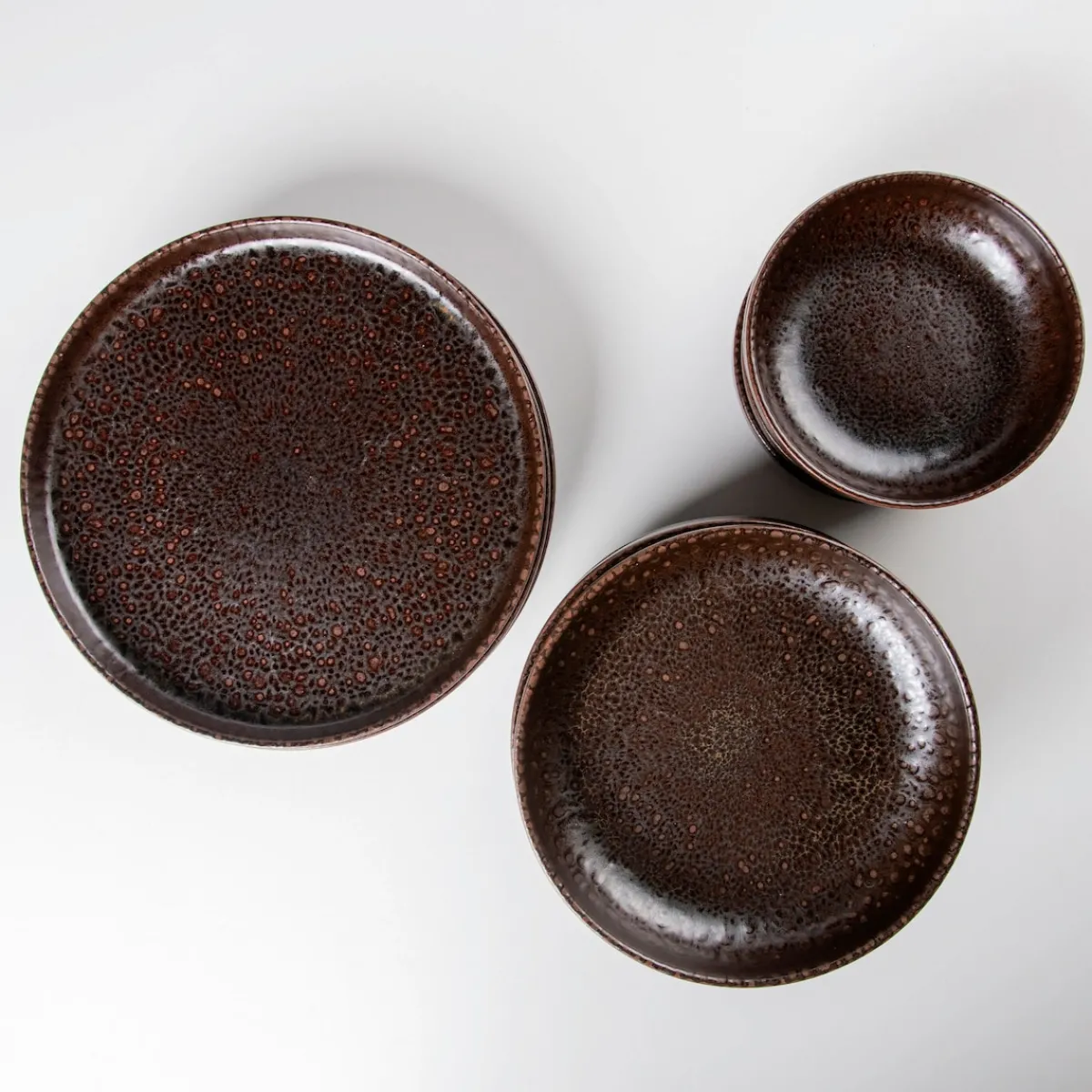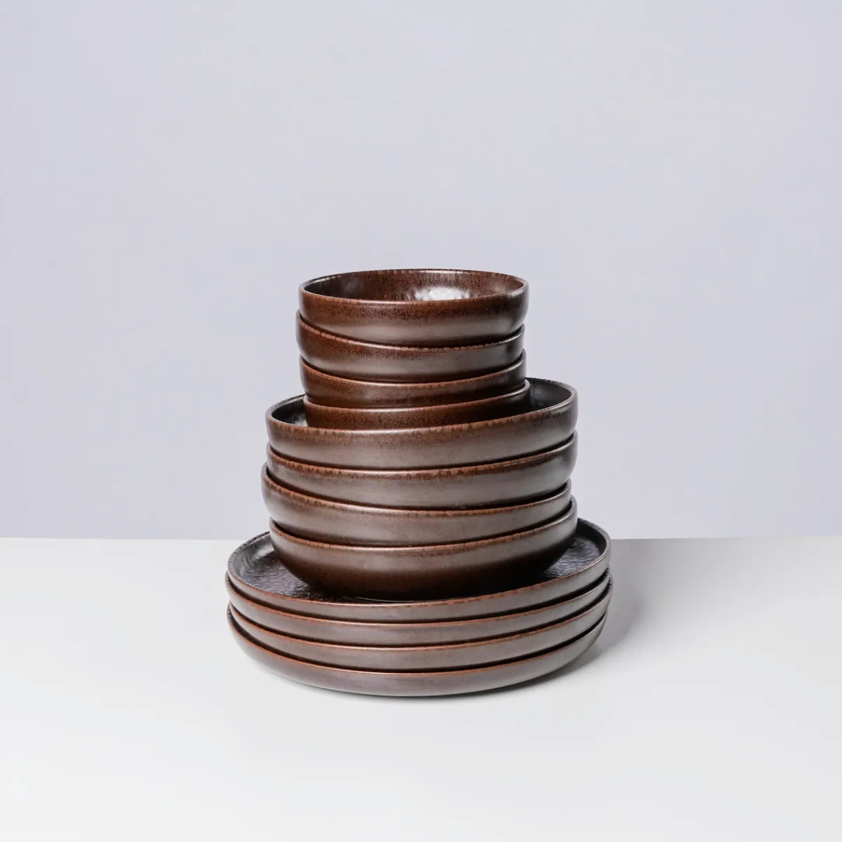 Unsere Kollektion Glockenklang zollt dem Traditionshandwerk der Glockengießerei Tribut, die vor über 1.000 Jahren ein bis heute unerreichtes Verfahren entwickelt hat. Mit ihrem außergewöhnlichen, seidenmatten Metallic-Look und ihrer massiven Formgebung tritt diese Keramikgeschirr-Kollektion selbstbewusst auf dem Esstisch auf.