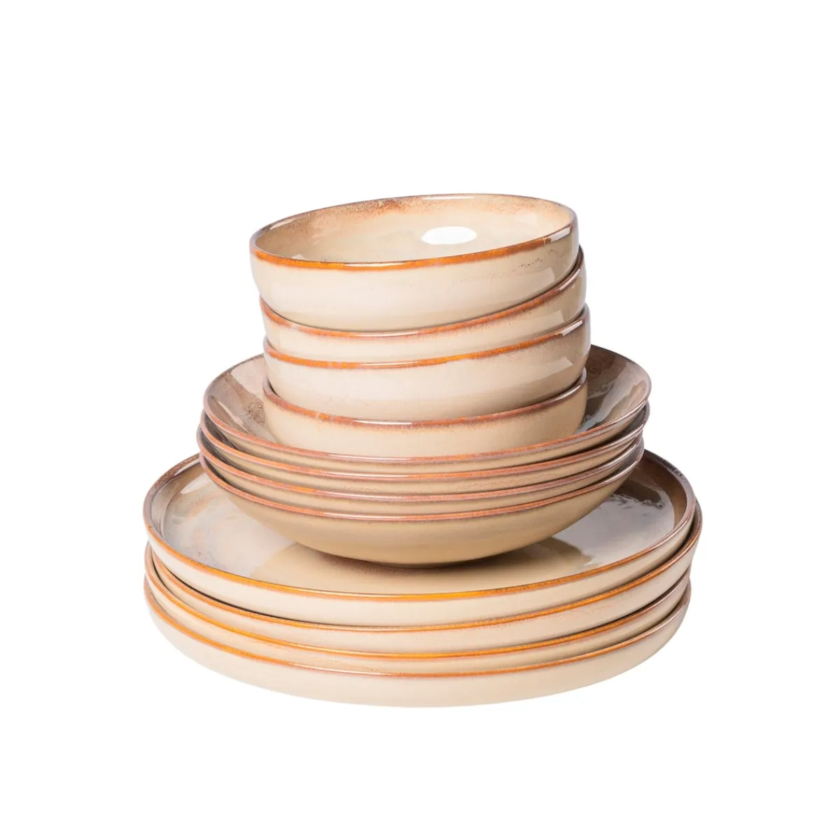 Lieferumfang: 4 große Speiseteller (28 cm Durchmesser), 4 tiefe Teller (22 cm, 900 ml randvoll), 4 Müslischalen (16 cm, 600 ml randvoll)