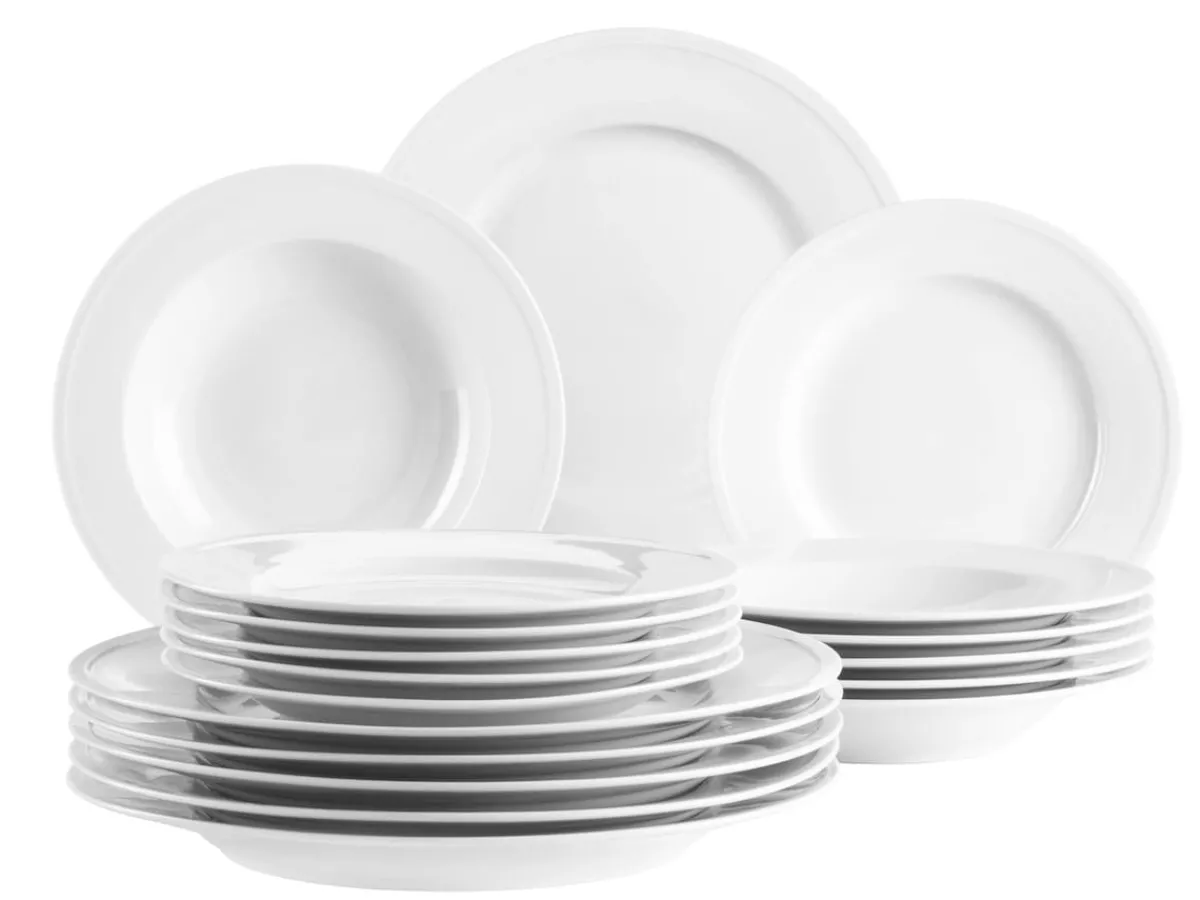 Zeitlose Eleganz kommt niemals aus der Mode: Die Geschirrserie „Arlona“, der österreichischen Marke Mäser, aus weißem Porzellan ist ein echter Klassiker, an dem Sie sich viele Jahre erfreuen werden. Die außergewöhnliche Randform verleiht der Serie ein stilvolles Update. Die Porzellanteller sind pflegeleicht, alltagstauglich und geeignet für Spülmaschine und Mikrowelle.