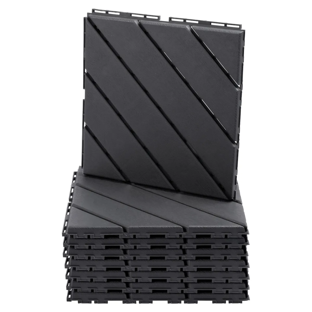 Verschönern Sie Ihre Terrasse oder Ihren Balkon im Handumdrehen! Die pflegeleichten, modernen Fliesen in klassischem Grau lassen sich dank Klick-System ganz einfach zusammenstecken und kinderleicht verlegen. 4 Designs zum Auswählen!