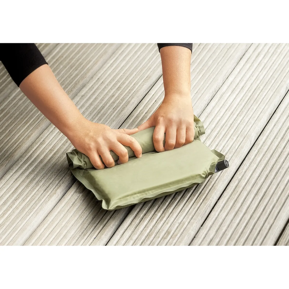 Freuen Sie sich auf ein warmes, weiches Plätzchen, wo immer Sie sind: Dieses selbst aufblasende Thermo-Mobilkissen verwandelt harte Sitze in bequeme Ruheoasen. Einfach Ventil aufdrehen und kurz warten – fertig!