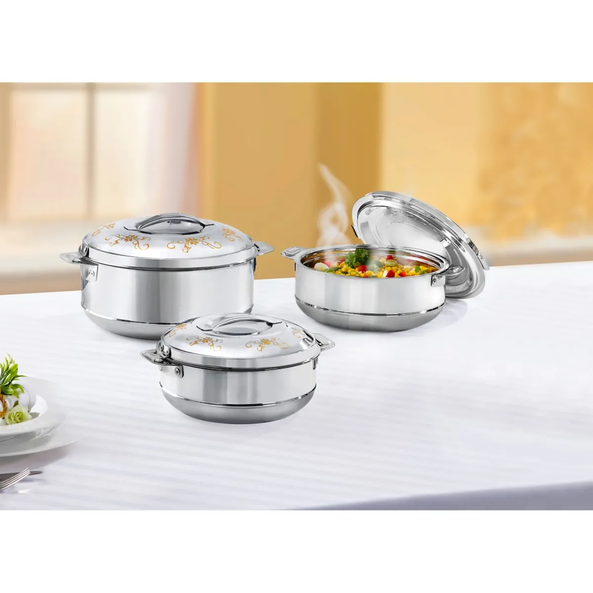Galant ist das optische Erscheinungsbild der gleichnamigen Thermoschüssel allemal. Mit der Kombination aus silber und gold und dem zeitlos eleganten floralen Muster kann sich die Schüssel auf jeder Tafel sehen lassen. Doch der Küchenhelfer überzeugt nicht nur optisch, sondern auch funktionell: