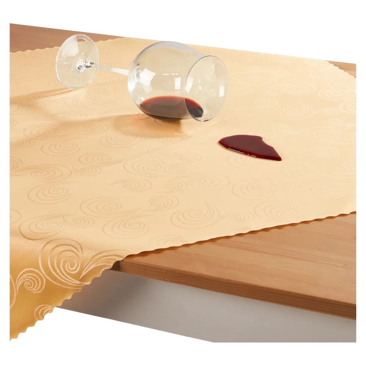 Jede optisch ansprechende Tischdekoration beginnt mit einer geschmackvollen Tischdecke. Dieses Exemplar mit zeitlos eleganten Spiralformen glänzt zusätzlich mit attraktiven Eigenschaften: Der Stoff ist schwer entflammbar und zusätzlich wasser- und schmutzabweisend – da kann die Party beginnen!