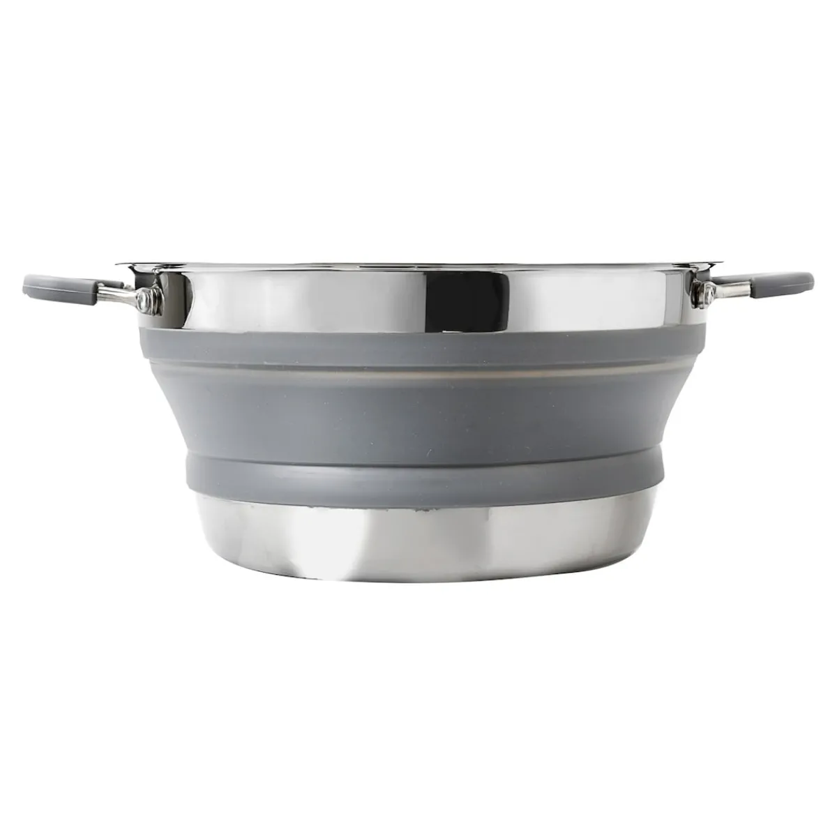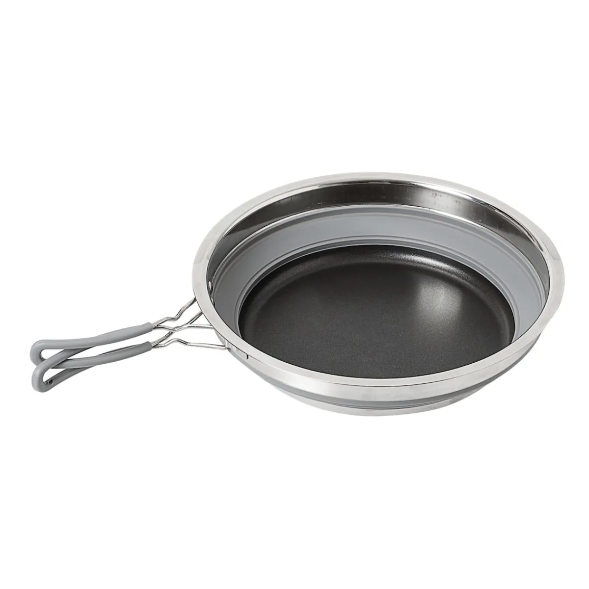 Entdecken Sie unser kompaktes Kochset – ideal für Wohnmobile und Camping. Mit einem zusammenklappbaren Topf, einer Pfanne mit Klappgriffen, einer Abtropfschale und einem Glasdeckel. Alle Teile sind platzsparend zusammenklappbar. Der Silikon-Mittelteil, Edelstahlring und der gläserne Deckel mit Anti-Rutsch-Rand bieten Qualität und Vielseitigkeit. Die temperaturisolierten Griffe sorgen für sicheres Handling. Dieses Set passt auf Elektro- und Gasherde. Genießen Sie kulinarische Freiheit auf kleinem Raum und erleben Sie das Abenteuer des mobilen Kochens!