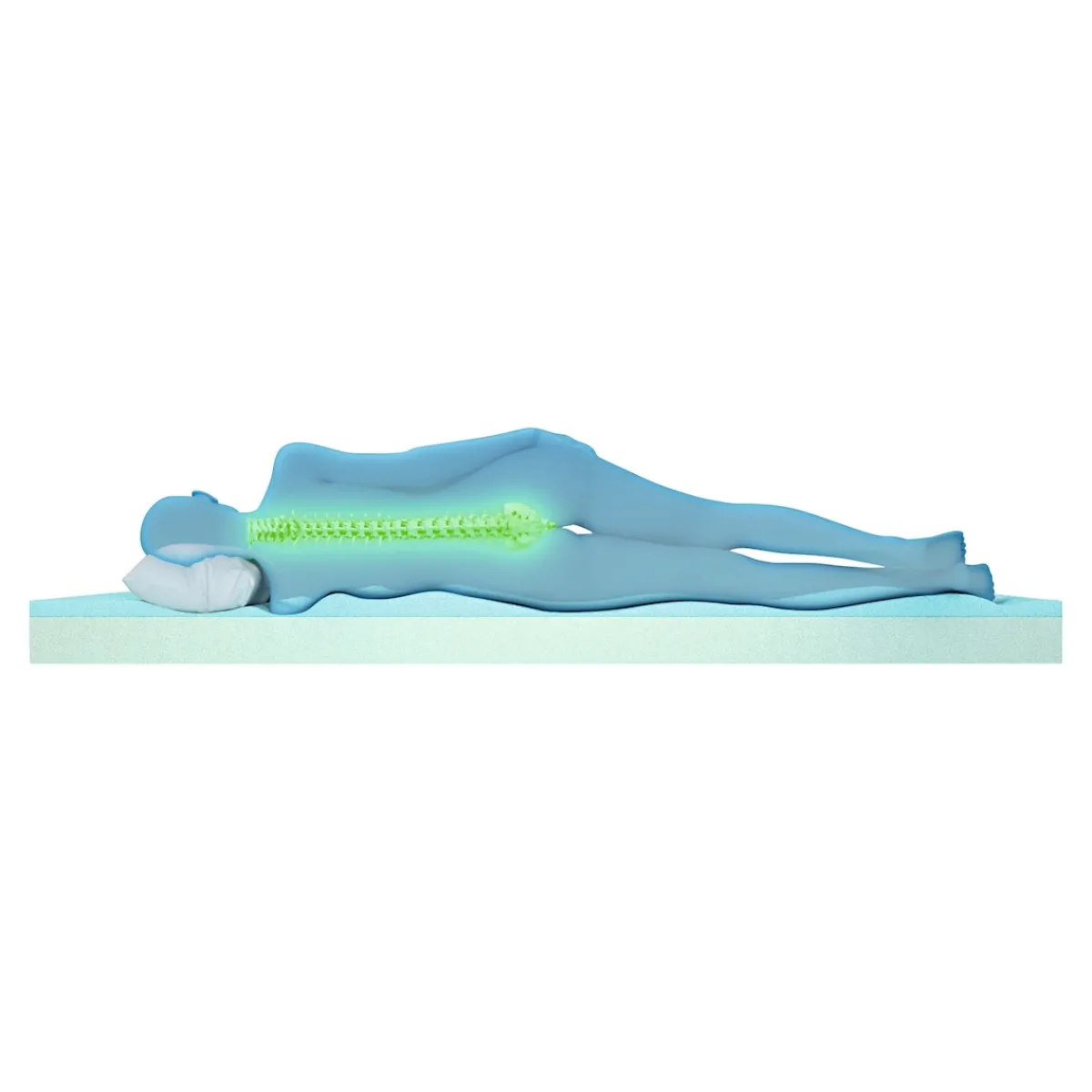 Das Geheimnis des eazzzy Toppers besteht in den zwei Schichten, aus denen er aufgebaut ist. Der Komfortschaum stützt die Wirbelsäule in ihrer gesamten Länge, das heißt vom Kopf bis zum Becken. Gleichzeitig bietet der anschmiegsame Gelschaum ergonomischen Liegekomfort, und zwar unabhängig von der Schlafposition. Das heißt, der Topper ist sowohl für Seiten- als auch Bauch- und Rückenschläfer geeignet. Wer unruhig schläft, profitiert von den bewegungsregulierenden Eigenschaften der Auflage, die mit ihrer Elastizität Schlafstörungen und Schmerzen vorbeugen kann. Mit der OptiAir-Steppung auf dem Bezug und dem Klimaband verbessert sich auch das Schlafklima, sodass Sie nachts weniger leicht schwitzen und somit auch im Sommer erholsamen Schlaf finden.