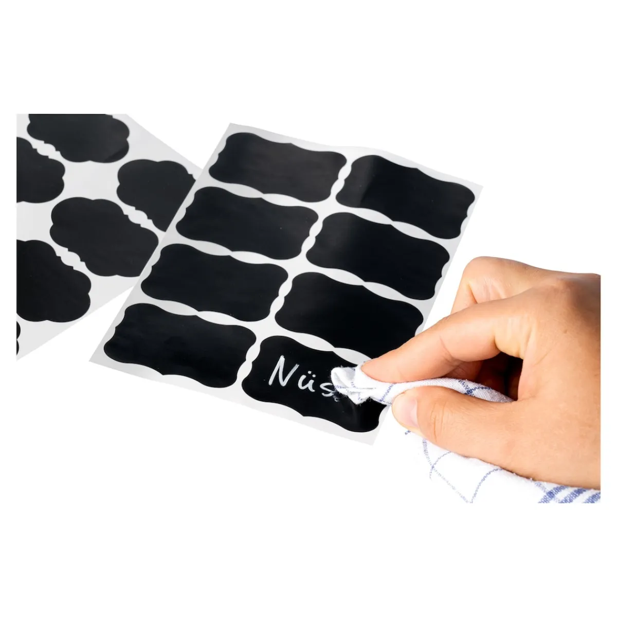 - gratis 24 wiederverwendbare Etiketten mit Stift