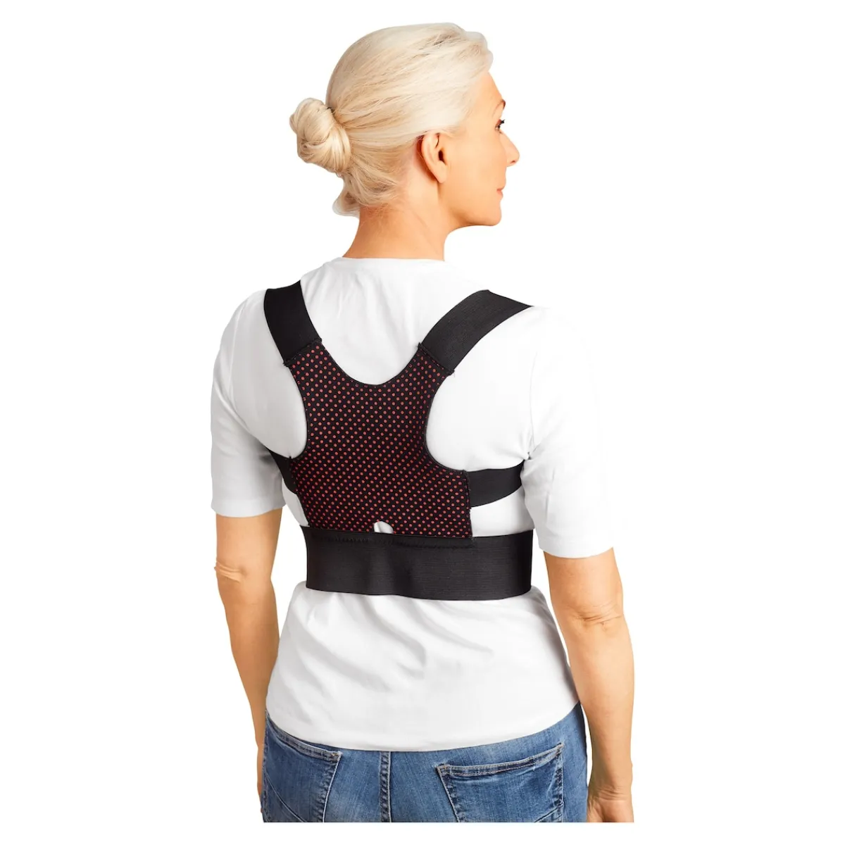 Dieser Geradehalter kann eine verbesserte Körperhaltung unterstützen. Infrarotpunkte geben zudem wohltuende Wärme an beanspruchte Muskeln ab. Er kann Schmerzen lindern und die Blutzirkulation in den verspannten Körperzonen fördern.