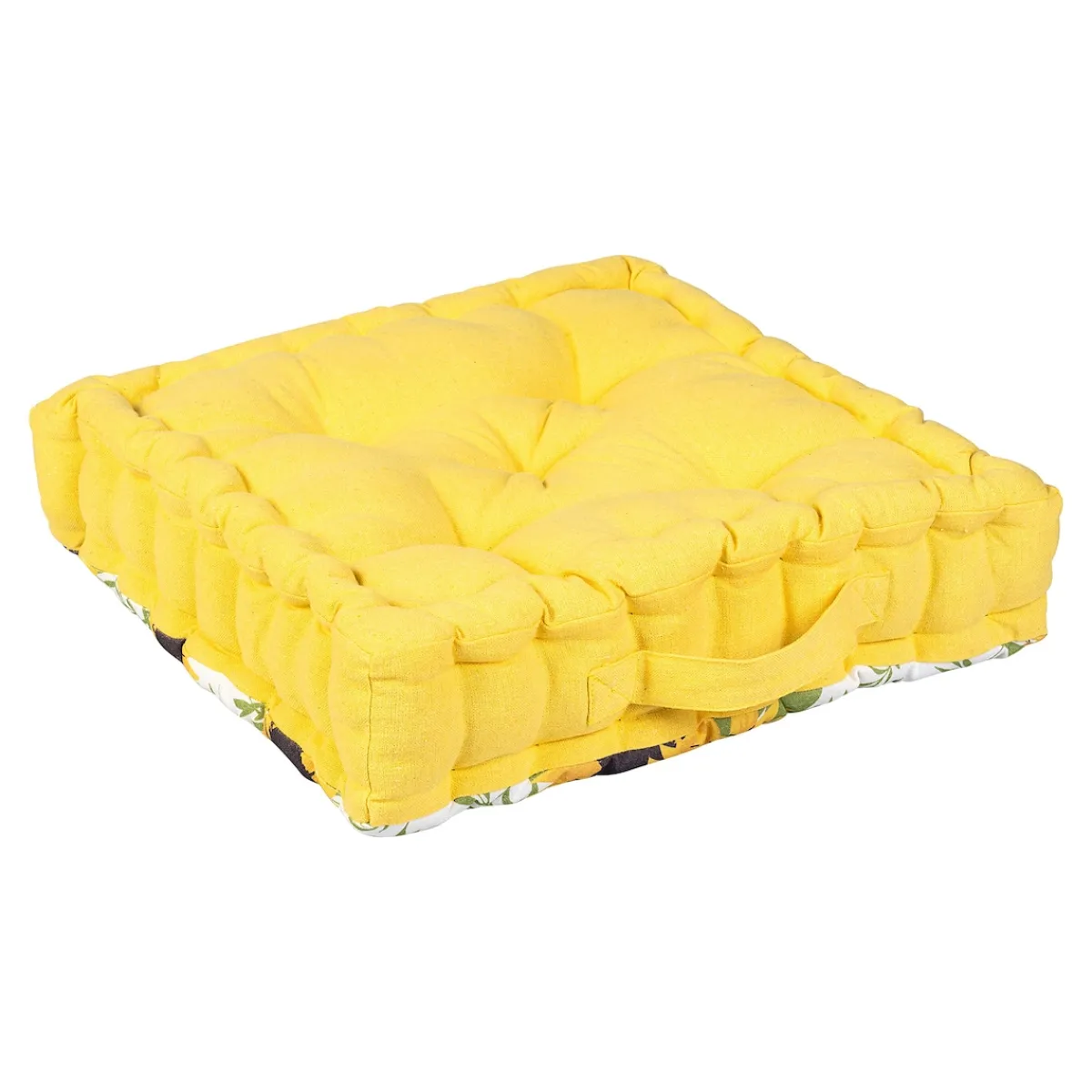 Mit diesem farbenfrohen Sitzkissen machen Sie es sich nicht nur bequem, sondern holen sich auch sommerliche Abwechslung ins Haus oder in den Garten. Die eine Seite zeigt ein frisches Sonnenblumenmotiv, die andere bleibt mit Uni-Optik dezent – ideal zum Wenden nach Stimmung. Die weiche Polsterung sorgt für hohen Sitzkomfort – und das mit Stil.