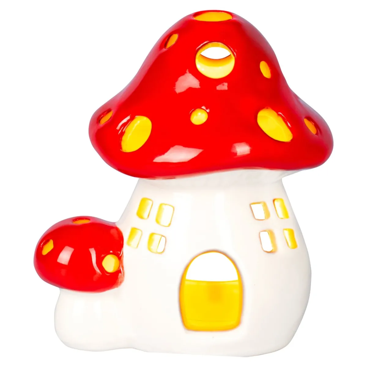 Dieses außergewöhnliche Teelicht-Häuschen bringt die goldene Jahreszeit in Ihre vier Wände. Der Fliegenpilz-Look sorgt für einen Hauch Märchenwald, während innen ein kleines Teelicht für warmen Schein sorgt. Die Fenster lassen das Licht sanft nach außen dringen und erzeugen so ein stimmungsvolles Ambiente – besonders in den Abendstunden. Ob als Einzelstück oder Teil Ihrer Herbstdeko: Dieses Keramikhäuschen bringt Licht, Charme und eine gute Portion Gemütlichkeit in Ihr Zuhause.