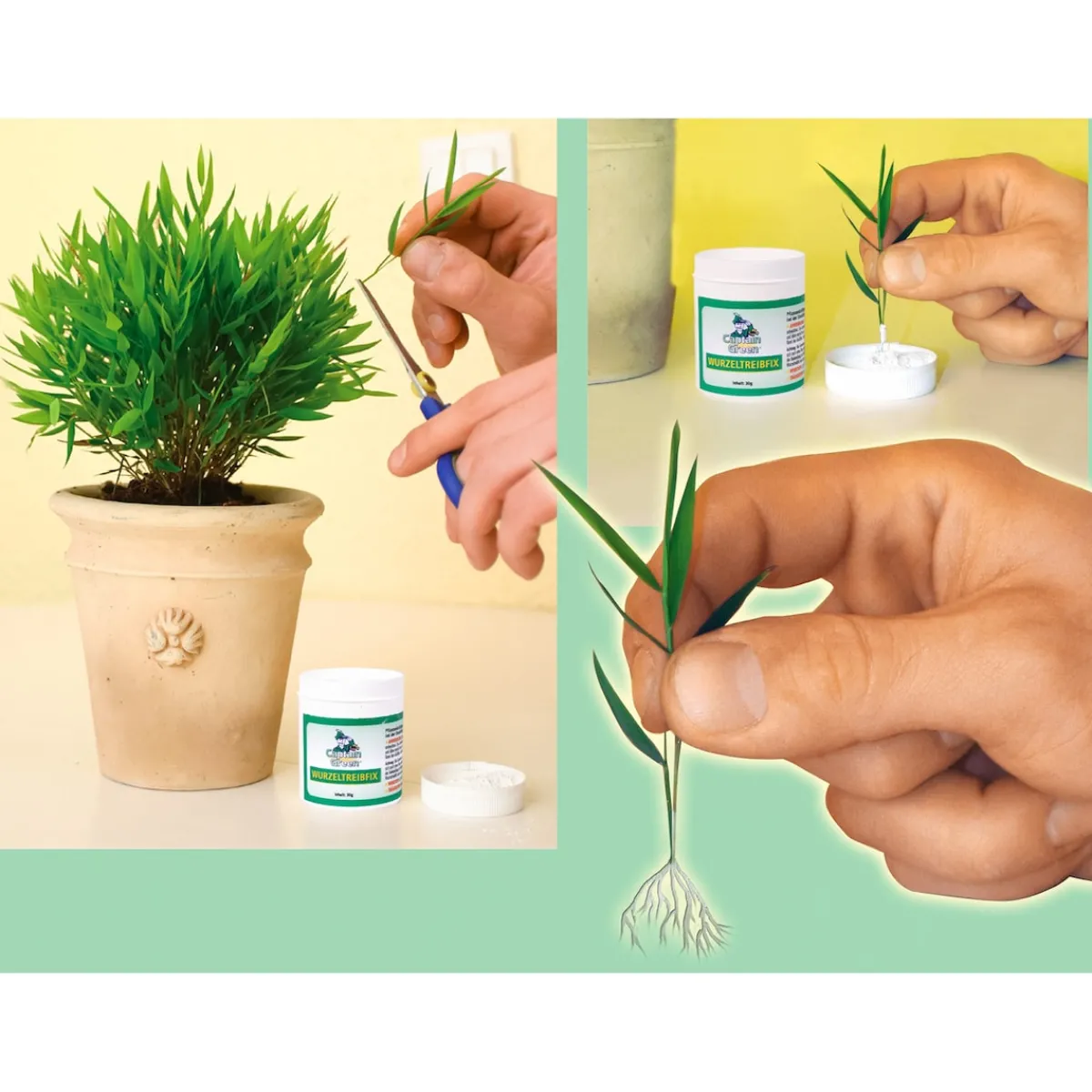 Ein genialer Helfer für Haus und Garten! Einfach die Schnittstelle des neuen Setzlings in den Wirkstoff tauchen – in kürzester Zeit bilden sich neue Wurzeln. Der Setzling gedeiht und wächst zu einer kräftigen Pflanze heran.