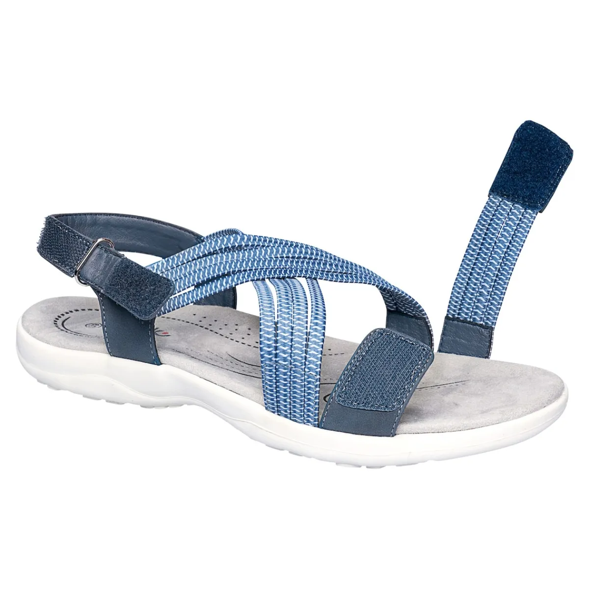 Sommerleicht und super komfortabel: Diese trendige Sandalette sorgt mit ihren elastischen Riemchen für einen hohen Tragekomfort. Dank der Klettverschlüsse kann sie bequem geöffnet und individuell an den Fuß angepasst werden. Mit weicher Decksohle und rutschhemmender Laufsohle.
