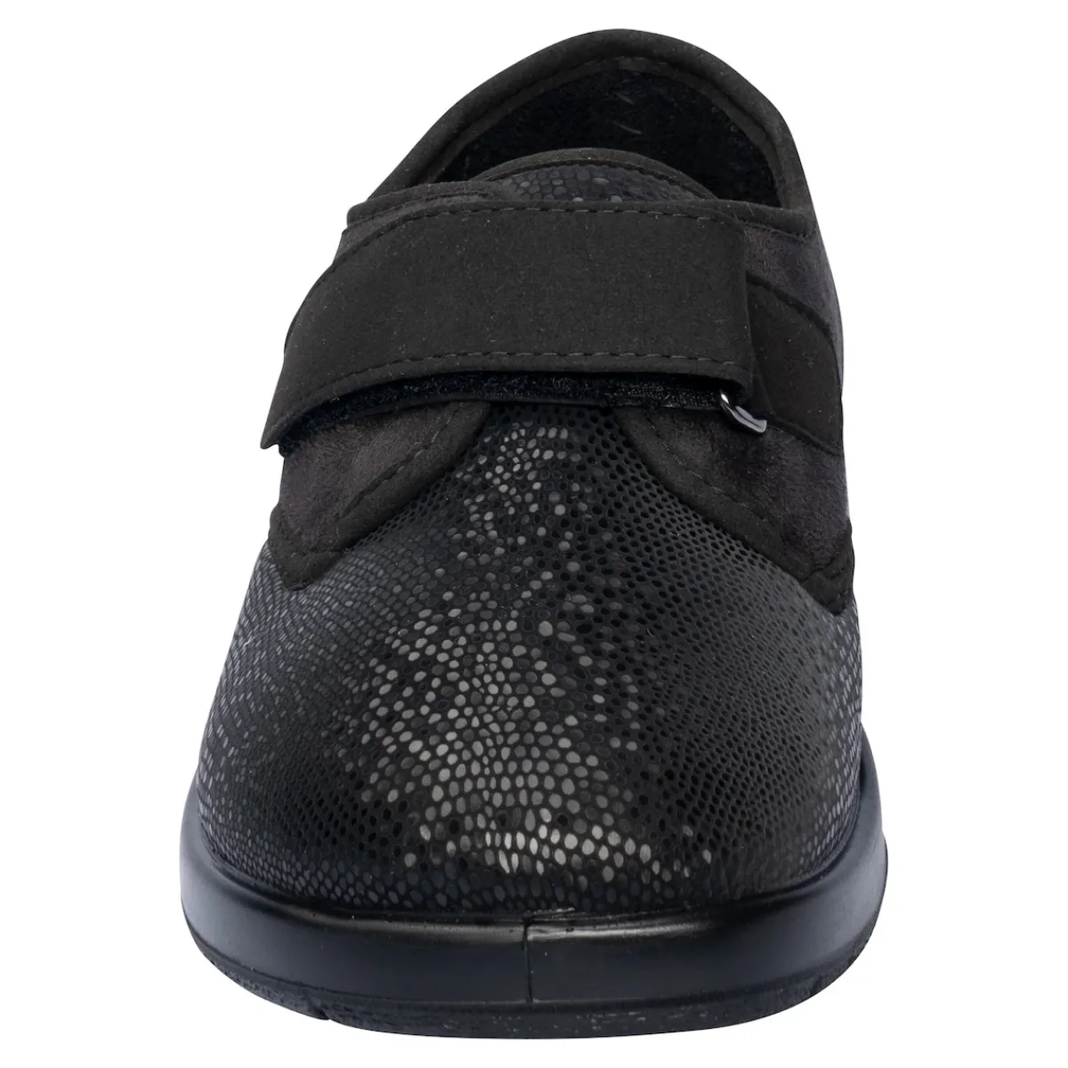 Stretchiges Microvelours, ein Klettverschluss mit Umlenköse und die L-Weite sorgen für angenehmen Sitz.