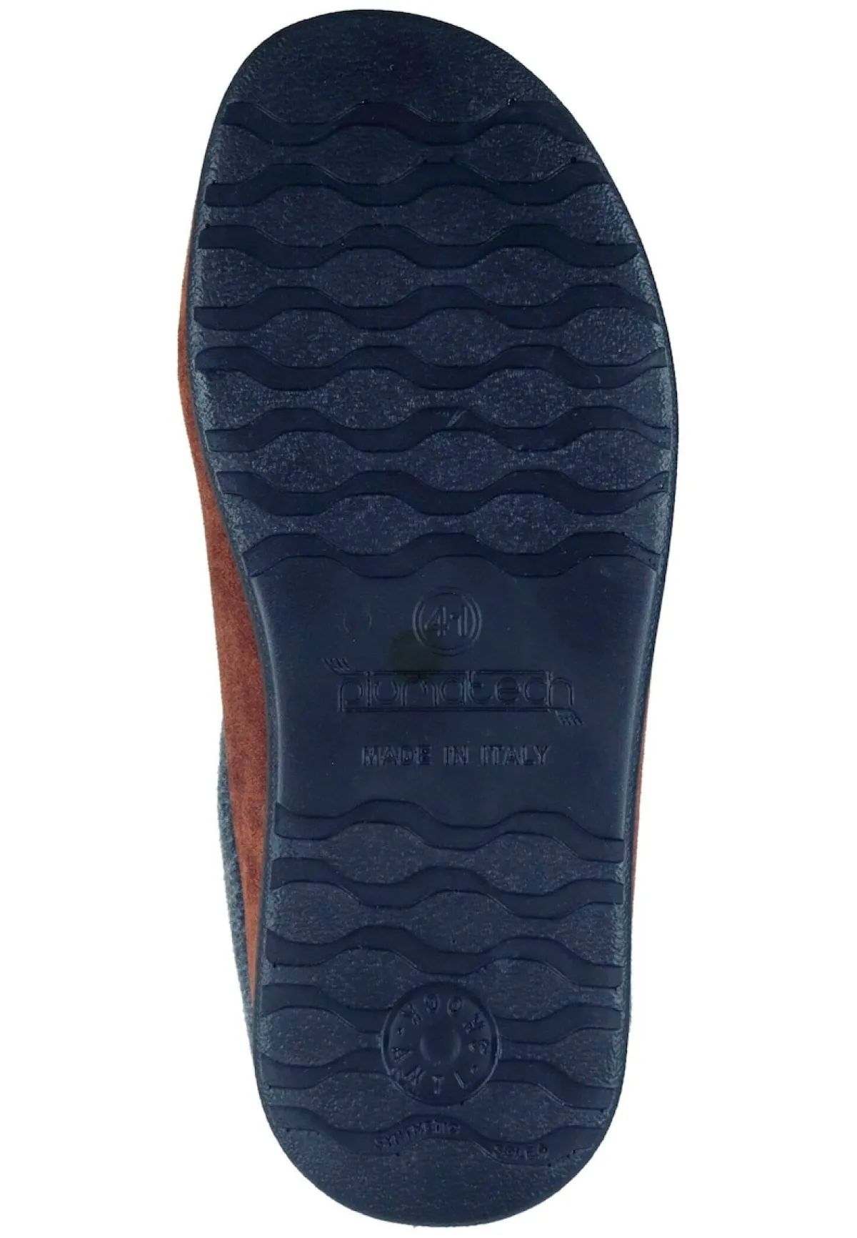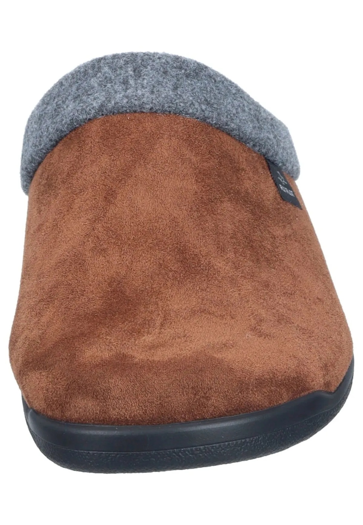 Bei diesem Produkt handelt es sich um einen Schuh aus der Kategorie Klassische Hausschuhe für Herren. Als Obermaterial wurde Textil verwendet und im inneren Bereich des Schuhs wurde ungefüttert und herausnehmbare Textildecksohle verarbeitet. Die Schuhweite dieses Artikels ist normal und somit standard. Als Verschlussart wurde Schlupfschuh gewählt und die PU-Sohle rundet das Produkt ab. Der Artikel fällt normal aus, bitte die gewohnte Größe bestellen. – Schuhweite: normal –
