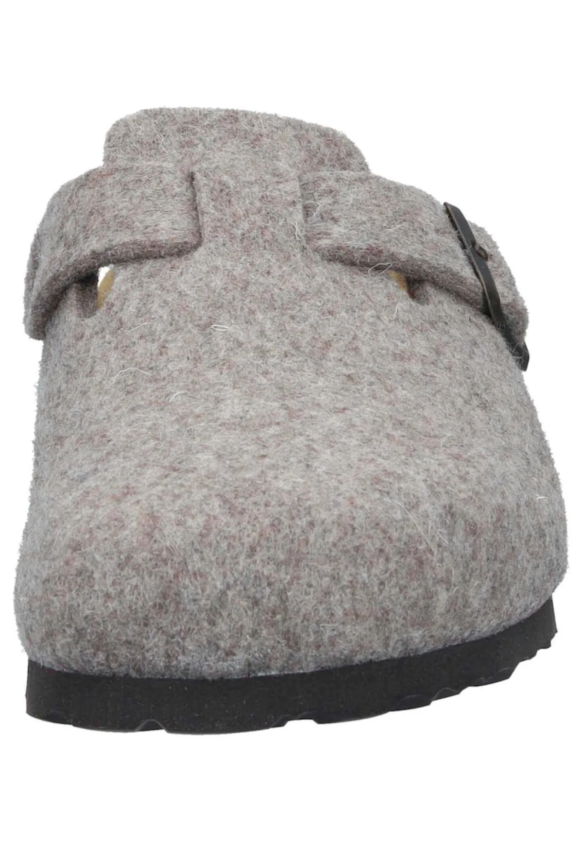 Bei diesem Produkt handelt es sich um einen Schuh aus der Kategorie Klassische Hausschuhe für Herren. Als Obermaterial wurde Wollfilz verwendet und im inneren Bereich des Schuhs wurde ungefüttert und weiche Lederdecksohle, gepolstertes Naturform-Korkfußbett verarbeitet. Die Schuhweite dieses Artikels ist Weite G und somit normal. Als Verschlussart wurde Schlupfschuh gewählt und die Leichtzellsohle rundet das Produkt ab. Der Artikel fällt normal aus, bitte die gewohnte Größe bestellen. – Schuhweite: Weite G –
