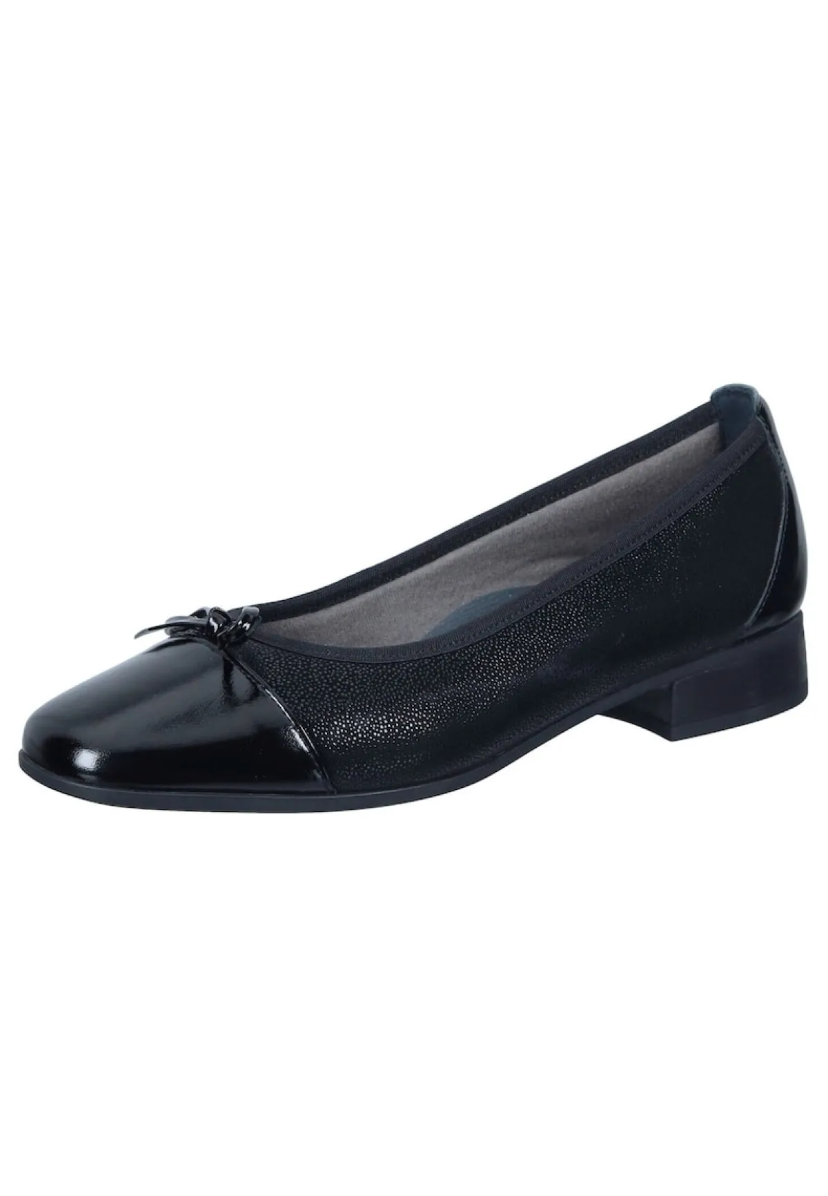 Bei diesem Produkt handelt es sich um einen Schuh aus der Kategorie Klassische Ballerinas für Damen. Als Obermaterial wurde Lackleder verwendet und im inneren Bereich des Schuhs wurde Synthetik-Futter und gepolsterte Lederdecksohle verarbeitet. Die Schuhweite dieses Artikels ist Weite G und somit normal. Als Verschlussart wurde Schlupfschuh gewählt und die TR-Sohle rundet das Produkt ab. Der Artikel fällt normal aus, bitte die gewohnte Größe bestellen. – Schuhweite: Weite G –