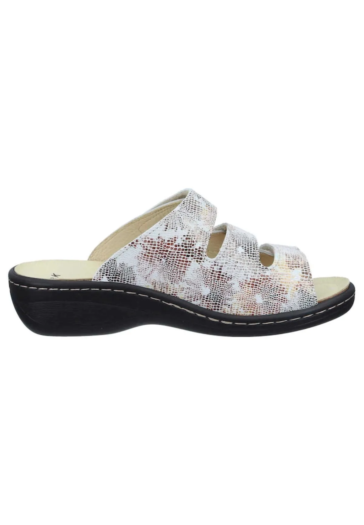 Bei diesem Produkt handelt es sich um einen Schuh aus der Kategorie Klassische Pantoletten für Damen. Als Obermaterial wurde Leder verwendet und im inneren Bereich des Schuhs wurde Lederfutter und Lederdecksohle, herausnehmbares gepolstertes Naturform-Fußbett verarbeitet. Die Schuhweite dieses Artikels ist Weite K und somit für sehr kräftige Füße. Als Verschlussart wurde Schlupfschuh gewählt und die PU-Sohle mit Gummiintarsie rundet das Produkt ab. Der Artikel fällt normal aus, bitte die gewohnte Größe bestellen. – Schuhweite: Weite K –