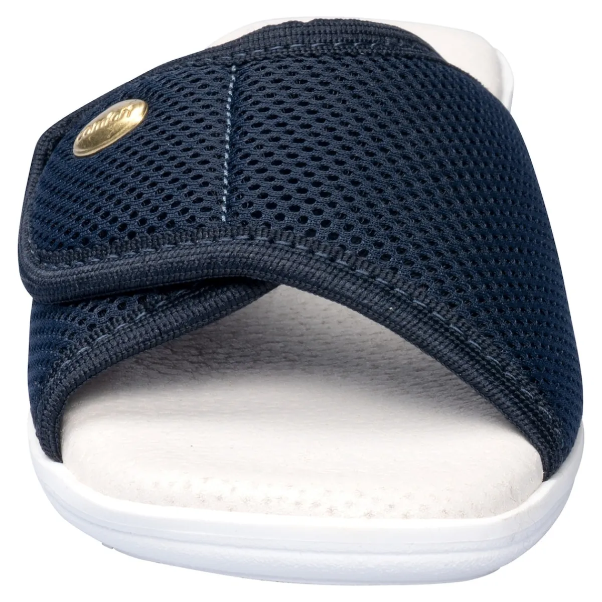 In diesen Komfort-Pantoletten fühlen sich Ihre Füße ganz sicher wohl! Das angenehme Fußbett lässt den Füßen genug Bewegungsfreiheit, gibt aber dennoch sicheren Halt. Aus angenehm weichem Material. Mit Klettverschluss.