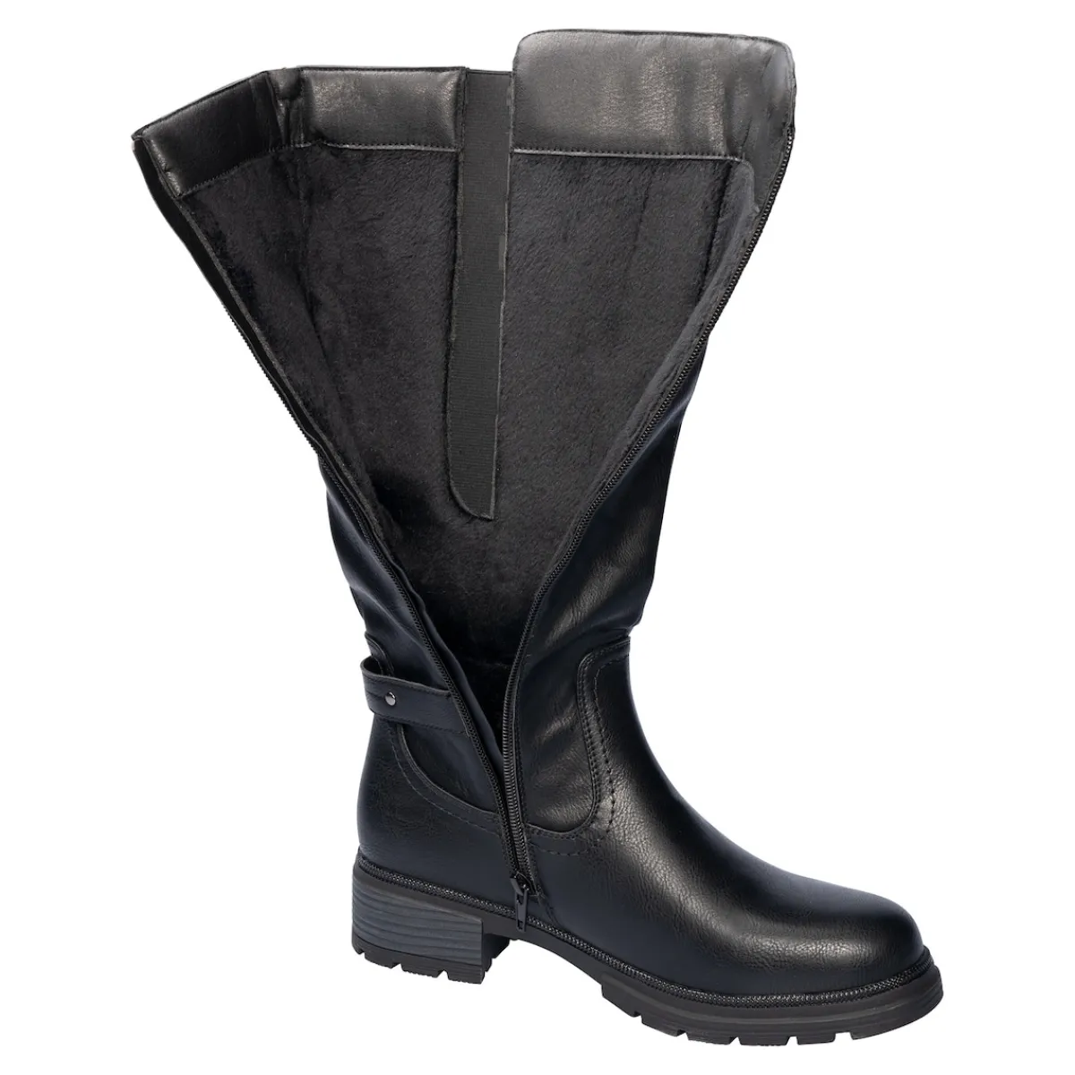 Hineingeschlüpft in den warm gefütterten Stiefel in Leder-Optik: Dank elastischem Einsatz passt er sich optimal Ihrem Bein an – auch bei stärkeren Waden. Mit Reißverschluss für einen schnellen Ein- und Ausstieg, robuster Profil-Laufsohle und einem Blockabsatz von 4 cm. Schafthöhe:34 cm.