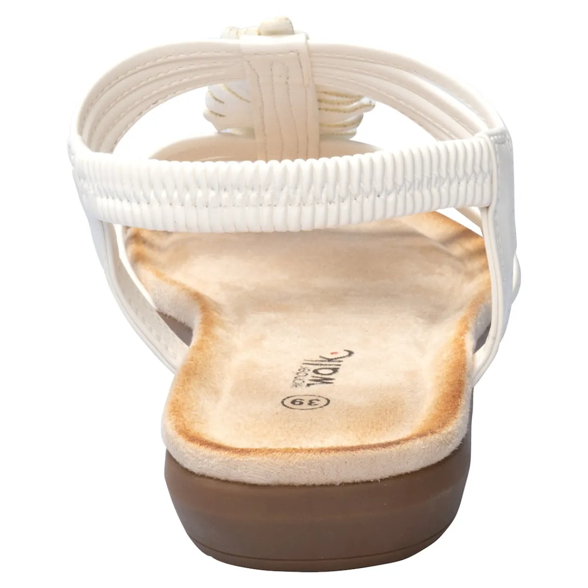 Mit Leichtigkeit in den Sommer! Diese Sandale mit weicher Decksohle macht ihrem Namen alle Ehre. Den Rist ziert eine filigrane Federapplikation mit Glitzersteinchen, die in der Sonne funkeln. Dank elastischem Riemchen an der Ferse ist sie schnell an- und ausgezogen und schenkt Ihnen den ganzen Tag höchsten Tragekomfort. Mit rutschhemmender Laufsohle.