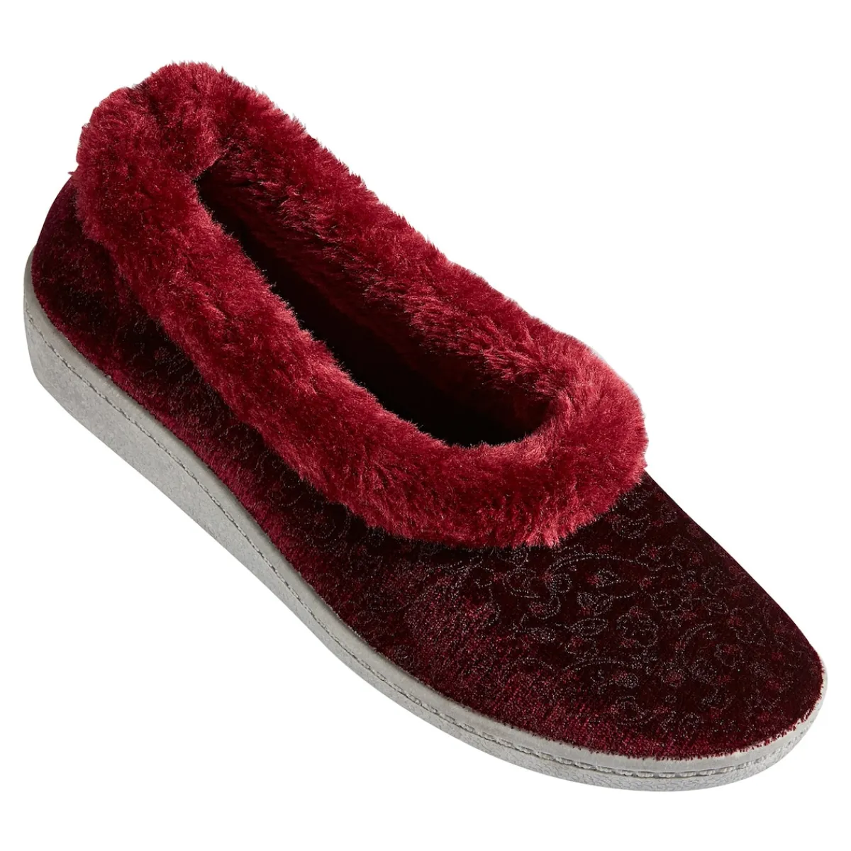 Zu Hause ist es doch am schönsten. Umso mehr noch, wenn die Füße kuschelig eingepackt sind. Dafür sorgt dieser Hausschuh mit herrlichem floralem Muster. Durch den leichten Keilabsatz von 3,5 cm haben Sie ein besonders angenehmes Gehgefühl. Mit Kunstfell am oberen Rand.
