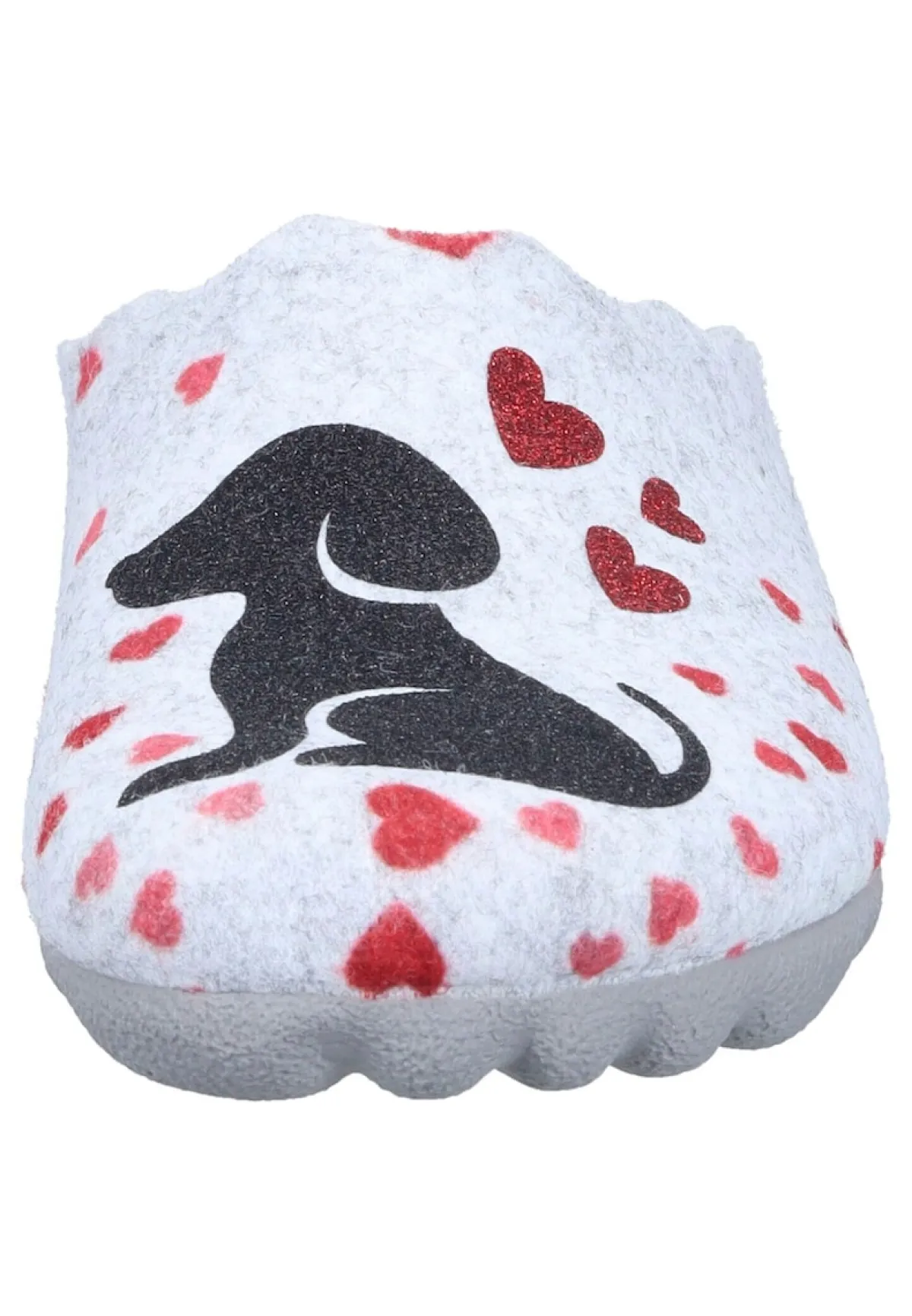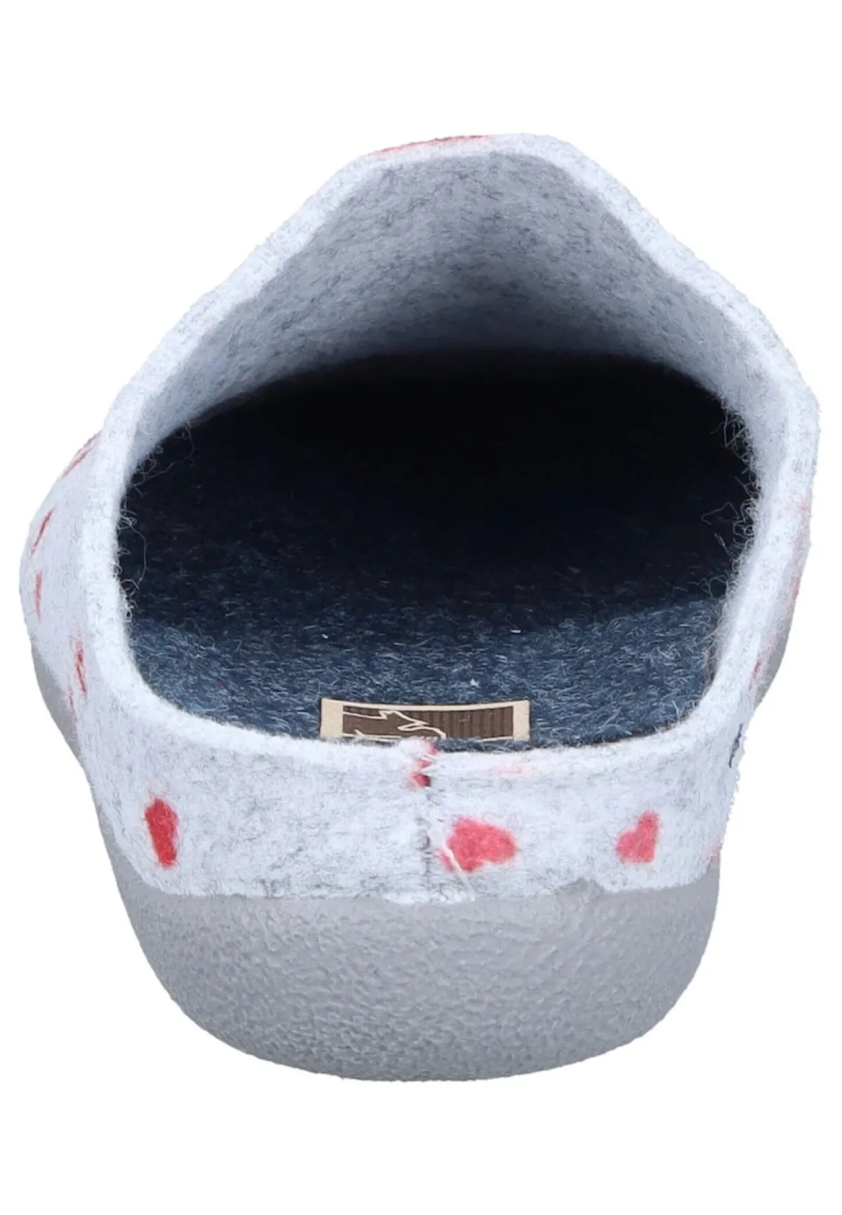 Bei diesem Produkt handelt es sich um einen Schuh aus der Kategorie Klassische Hausschuhe für Damen. Als Obermaterial wurde Filz verwendet und im inneren Bereich des Schuhs wurde ungefüttert und Filzdecksohle verarbeitet. Die Schuhweite dieses Artikels ist normal und somit standard. Als Verschlussart wurde Schlupfschuh gewählt und die TR-Sohle rundet das Produkt ab. Der Artikel fällt normal aus, bitte die gewohnte Größe bestellen. – Schuhweite: normal –
