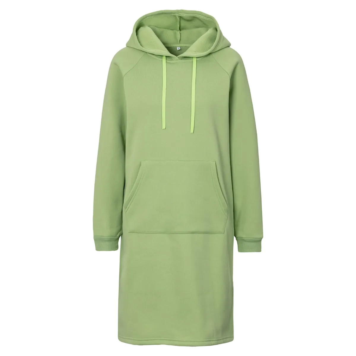 Pure Gemütlichkeit schenkt Ihnen dieses stilvolle, weich gefütterte Hoodie-Kleid in frischem Apfelgrün. Eine großzügig geschnittene Kängurutasche, Seitenschlitze und die lässige Kapuze mit Satinband-Kordeln versprechen viele entspannte Stunden!