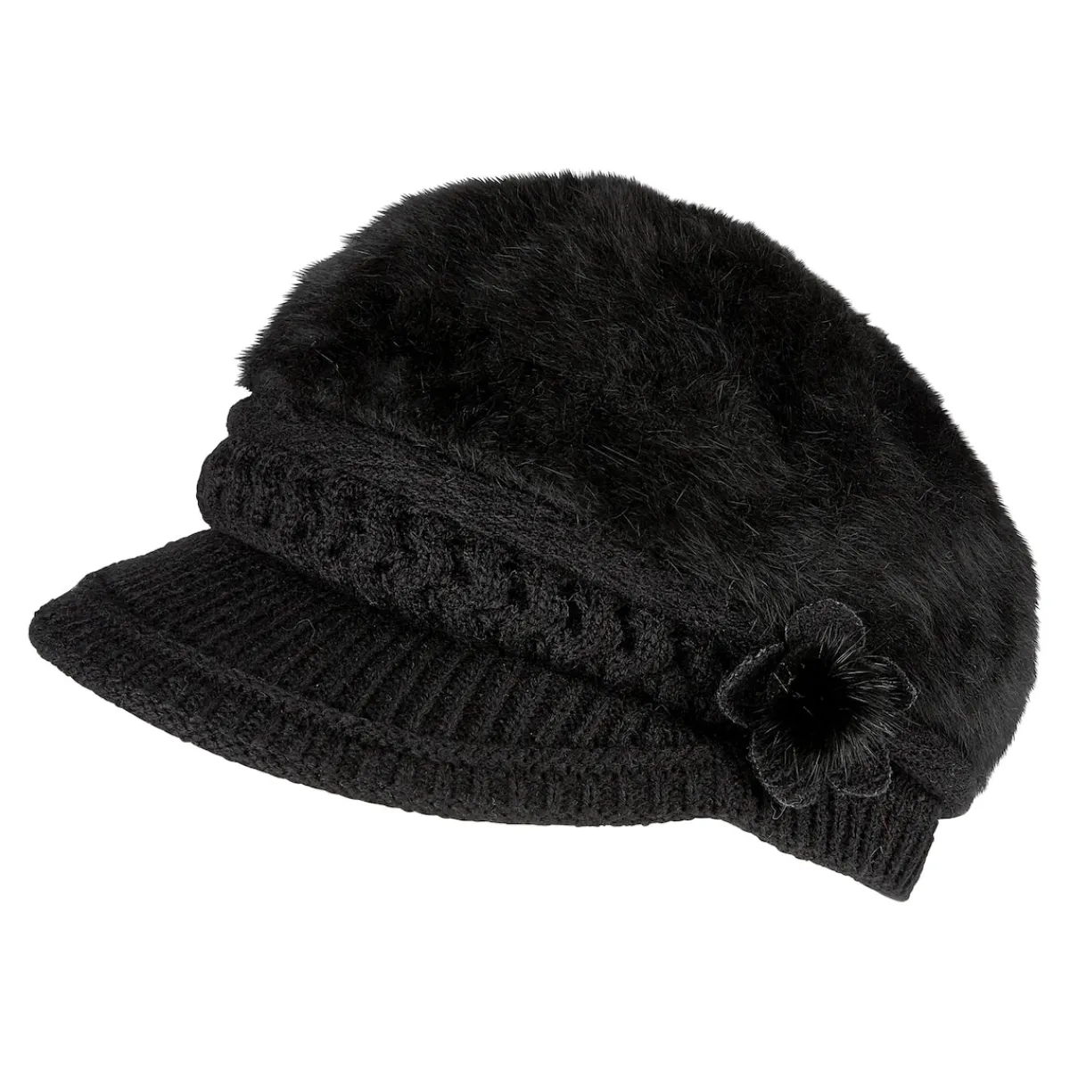 Das außergewöhnliche Design besticht durch die Kombination verschiedener Strickmuster und Felloptik. Eine kleine Blume in gleicher Farbe ist als raffiniertes Highlight auf der Seite angebracht. Doch nicht nur optisch strahlt die Mütze Gemütlichkeit aus. Dank kuscheligem Innenfutter hält sie auch schön warm. Praktisch: Sie passt bis zu einem Kopfumfang von 58 cm.