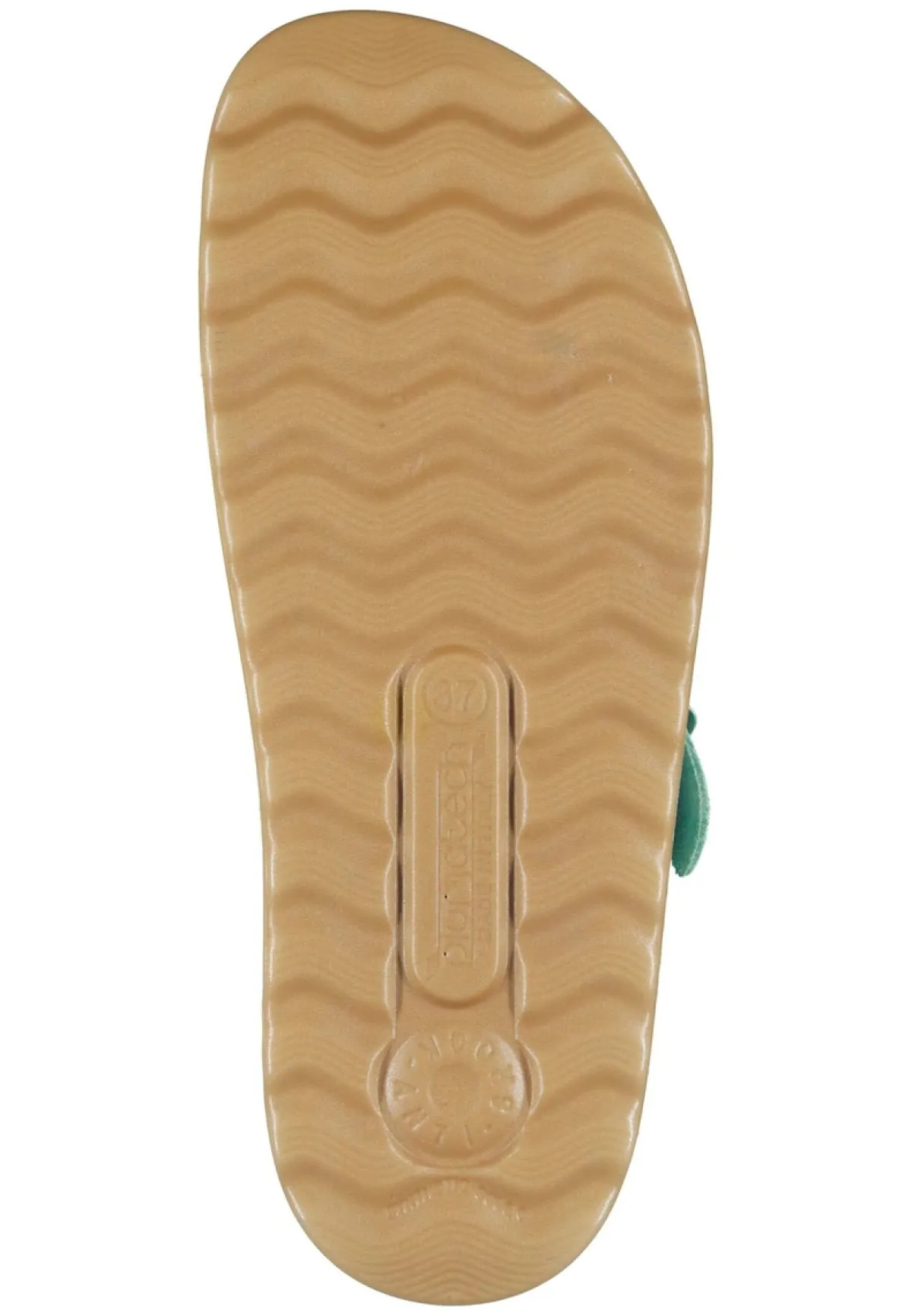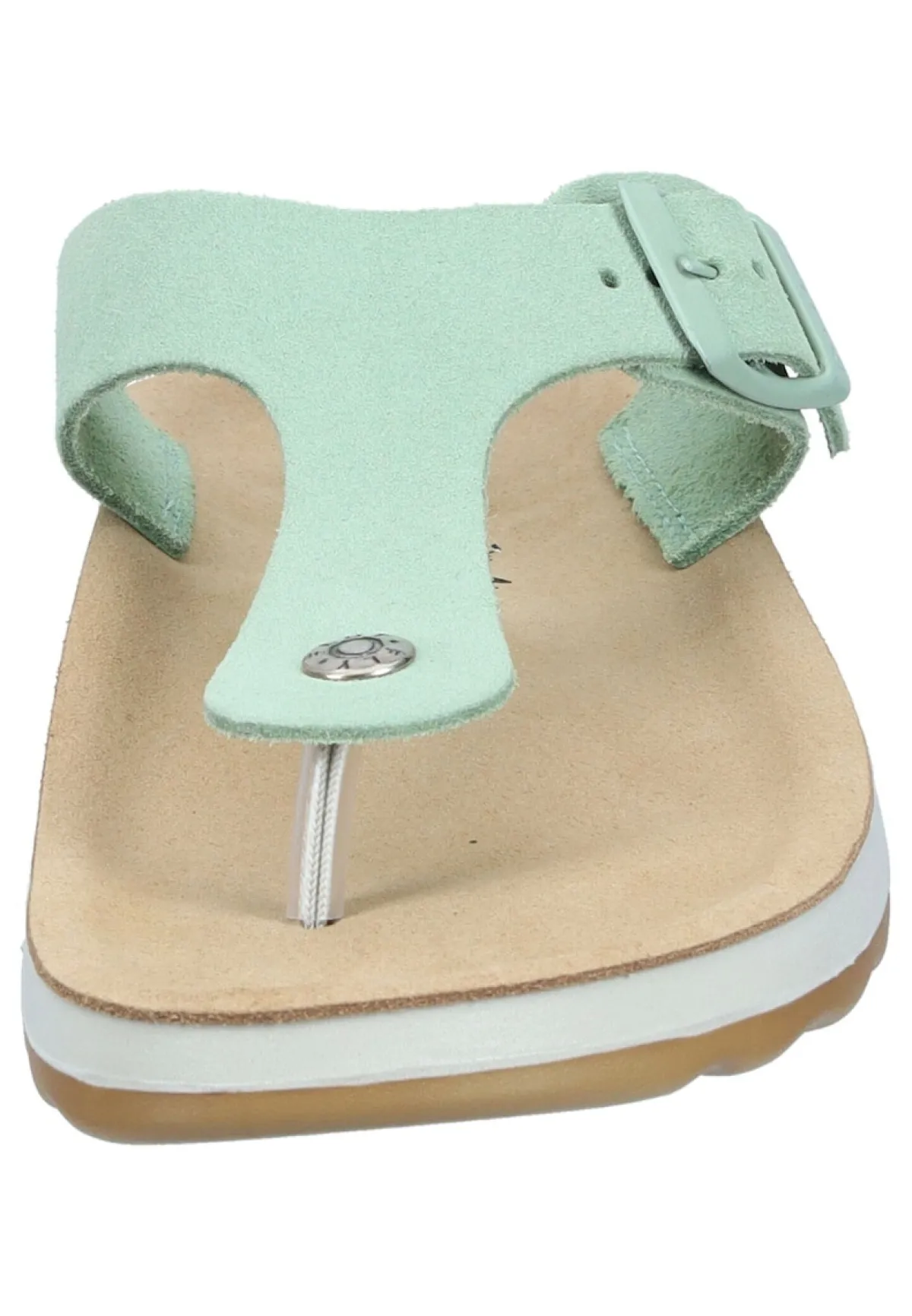 Bei diesem Produkt handelt es sich um einen Schuh aus der Kategorie Zehentrenner für Damen. Als Obermaterial wurde Veloursleder verwendet und im inneren Bereich des Schuhs wurde ungefüttert und gepolsterte Lederdecksohle verarbeitet. Die Schuhweite dieses Artikels ist normal und somit standard. Als Verschlussart wurde Schlupfschuh gewählt und die PU-Sohle rundet das Produkt ab. Der Artikel fällt normal aus, bitte die gewohnte Größe bestellen. – Schuhweite: normal –